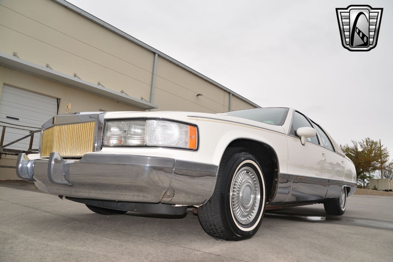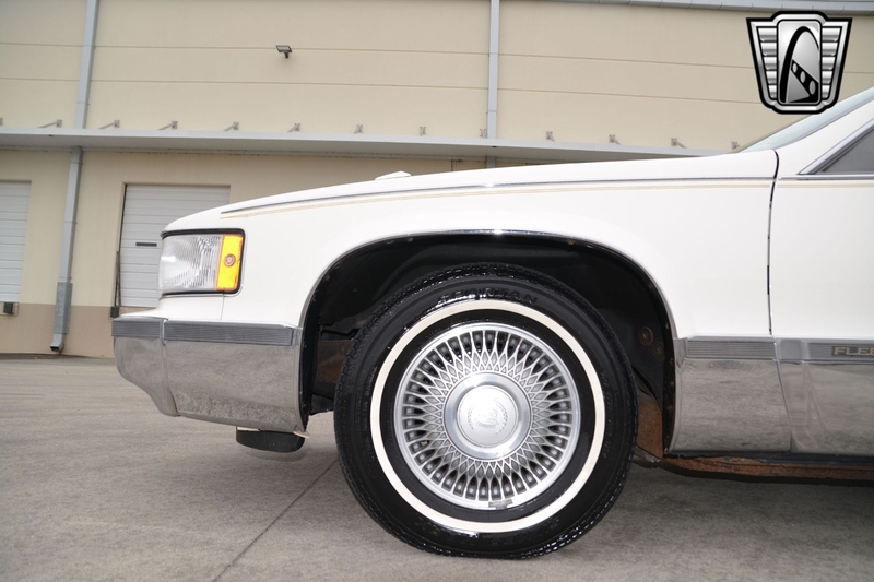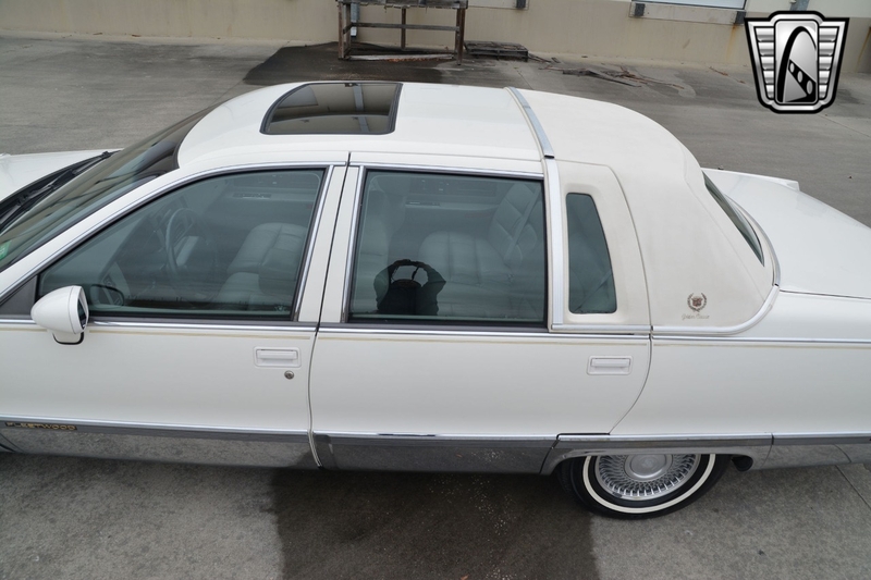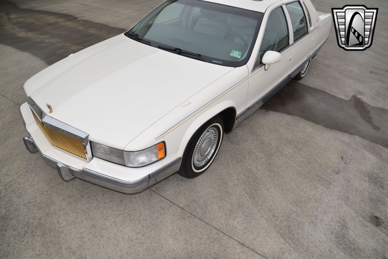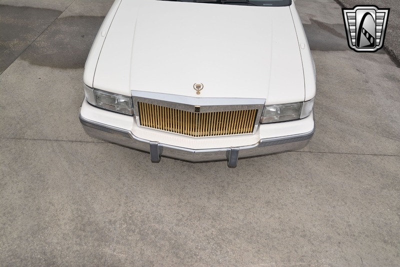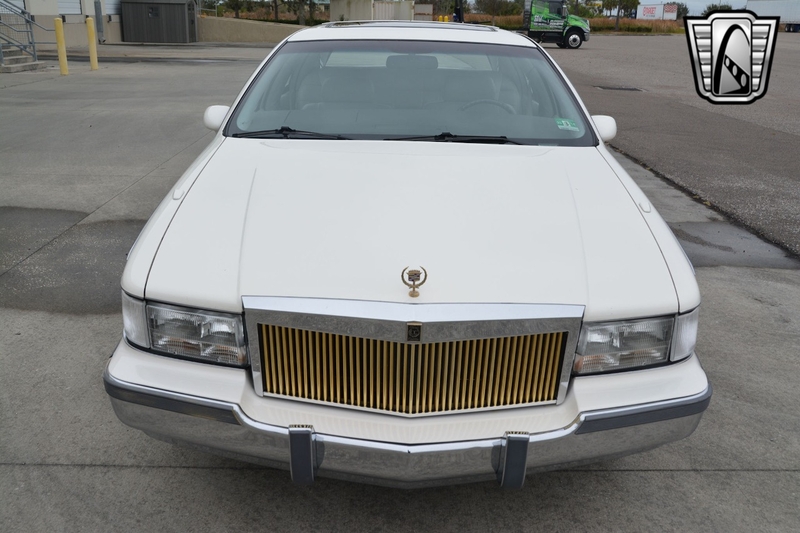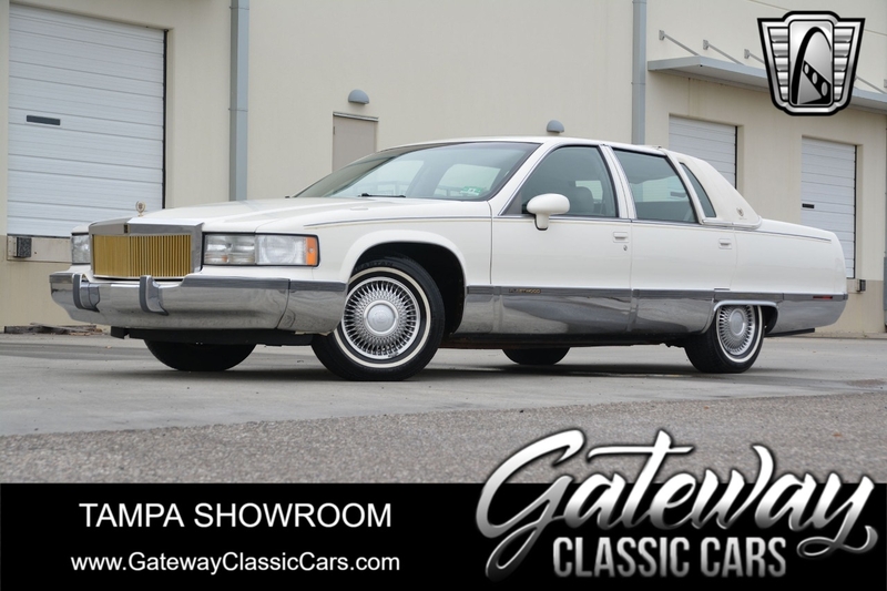 Description : Gateway Classic Cars of Tampa is proud to offer this sharp 1993 Cadillac Fleetwood Brougham. The current owner brought this car from New Jersey to Florida and has enjoyed it for almost 10 years. Walking around this â93 one should notice the beautiful gloss white paint that is offset with gold pin stripping. Adding to the curb appeal is a gold-colored grille, alloy wheels wrapped in white wall radial tires, sunroof, white vinyl top, âGolden Classicâ badging, and fender skirts. The interior flows well with the exterior theme sporting light gray leather seats. The interior has a luxury and comfortable feel. Woodgrain inserts, chrome accent pieces, air conditioning, AM/FM/ Cassette player, cruise control, power locks, power windows, power sunroof, seat belts, and a tilt steering well all add to this luxury feel. Powering this beauty is a 5.7L V8 engine that is mated to an automatic transmission with an odometer reading of just over 51k miles. The milage is documented on the accident-free Carfax report. If you are looking for a comfortable daily driver or even want to add a 90âs Brougham into your collection, this could be the one for you.