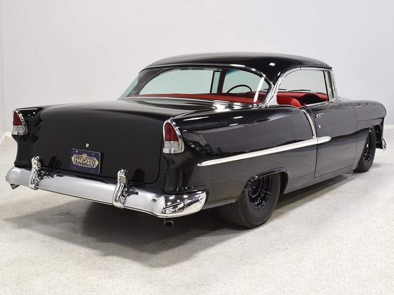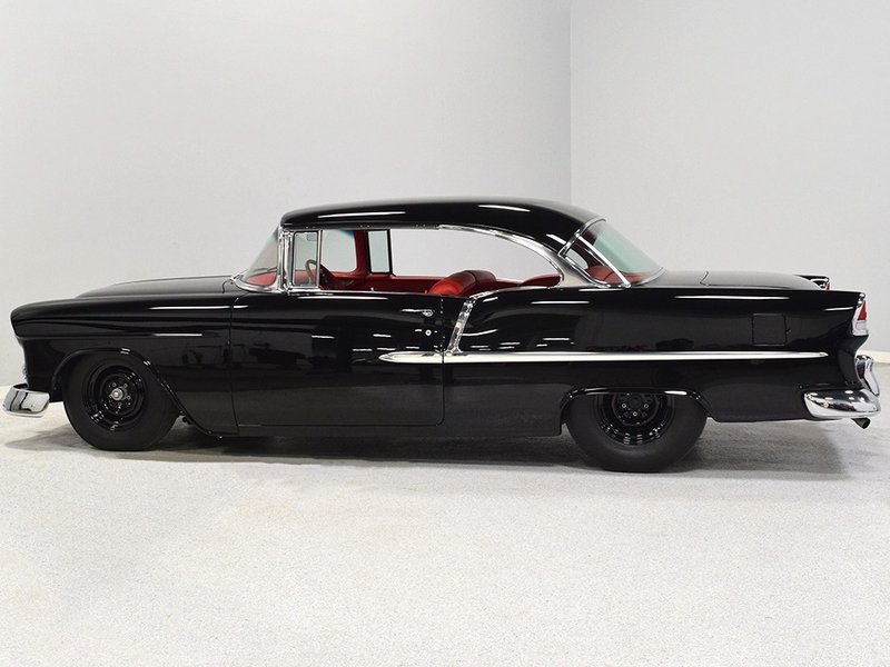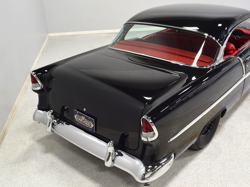 We fell in love with this gorgeous 1955 Chevrolet Bel Air hardtop the moment we saw it in photos. The color combination is iconic—black over red—and that stance is perfect. Add in the superior build quality, the show-quality paint and interior, and the general easy-going nature of the car that’s built to be driven, and, well, you get the best Tri-Five Chevy we’ve ever seen. Seriously. This car checks all the boxes. The great thing is that the builder took his time and got the little details right. It’s still unquestionably a ’55 Chevy, so the body modifications were minimal: some shaved emblems and that’s about it. What that does is let the incredible bodywork speak for itself and this sucker is STRAIGHT. You can’t phone it in with black paint and this car has ripple-free flanks that you could use to shave your face in the morning. There’s a huge amount of time invested in block sanding, buffing, and polishing that final finish to make it look like it does. All the chrome and stainless trim is new or restored to show standards, and it glitters against the black paint to make this car look razor-sharp. Panel gaps are exacting and you should hear the way these doors sound when you (gently) slam them. We don’t know how many hours were invested here, but it was more than most of us could spare. It’s just gorgeous.