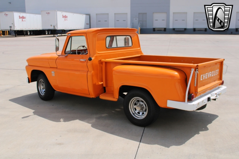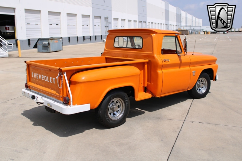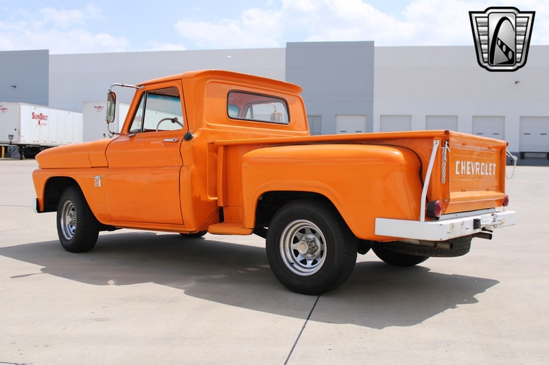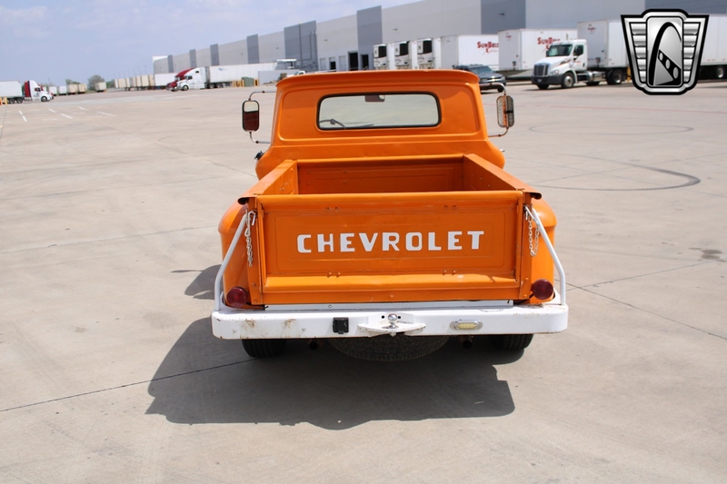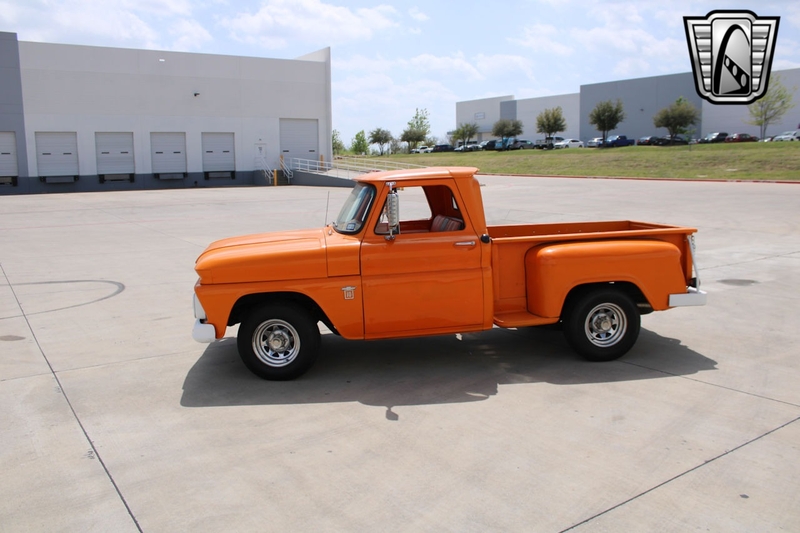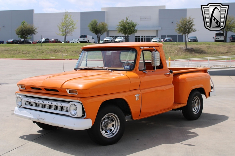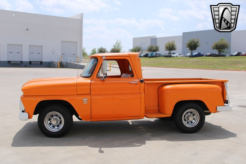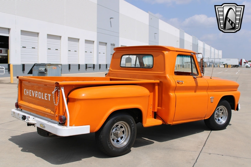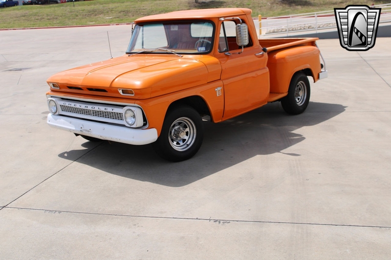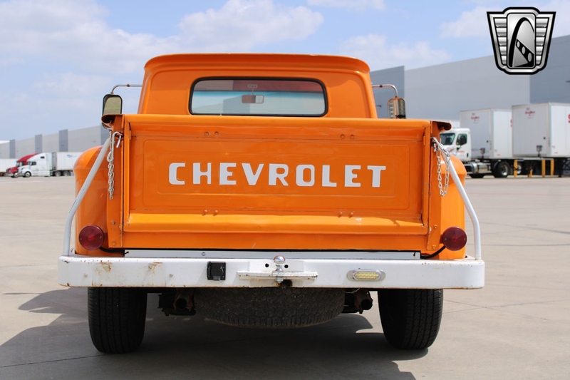 Description : Gateway Classic Cars of Dallas is excited to present this 1964 Chevrolet C10 Step side Pickup Truck. The current owner has enjoyed this truck and is ready to allow someone else to do the same. Walking around this ’64 one should notice the bright orange gloss paint. Adding to the curb appeal is a white grille, white bumpers, chrome mirrors, chrome 15” alloy wheels wrapped in radial tires, wooden bed liner, chrome handles, tow hitch with wire hookup, and white Chevrolet markings. The orange with black vinyl seats, orange with white door panels, white steering wheel, and white dash inserts all flow well with the exterior theme. Additional interior features include chrome handles, Retro sound AM/FM radio, and Sunpro aftermarket gauges. Powering this ’64 is believed to be the “High Torque” 283 CID V8 engine that is mated to a manual transmission. The current owner has provided repair documents showing the transmission being rebuilt in 2021. This service also included a differential rebuild and flywheel resurfaced. If you are looking for a 60’s pickup, this Chevrolet could be the one for you!