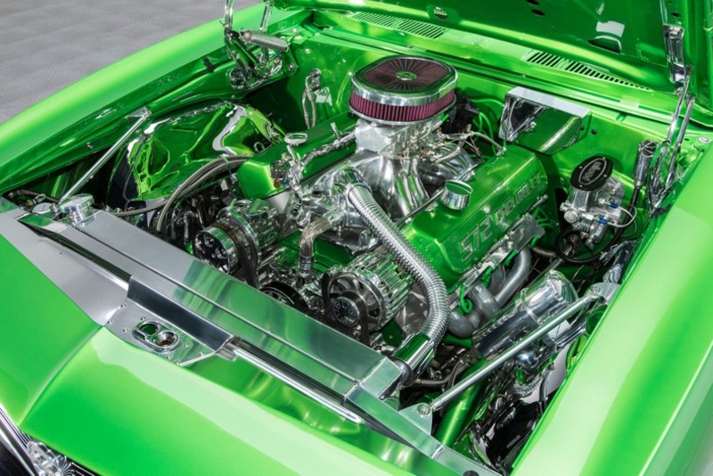 The beneficiary of a deatiled, ground-up build that spared absolutely no expense, this slick Chevy is the product of A LOT of time spent sweating details. A series of solid body panels displays excellent fit and world-class finish. Vivid Synergy Green two-stage seals dynamic flake in a glossy, wet-look shine. And the result is one very well done pavement scorcher that'll drop jaws and turn heads wherever it roams.
