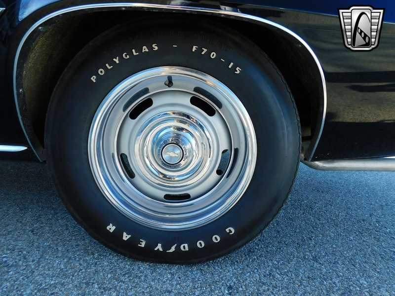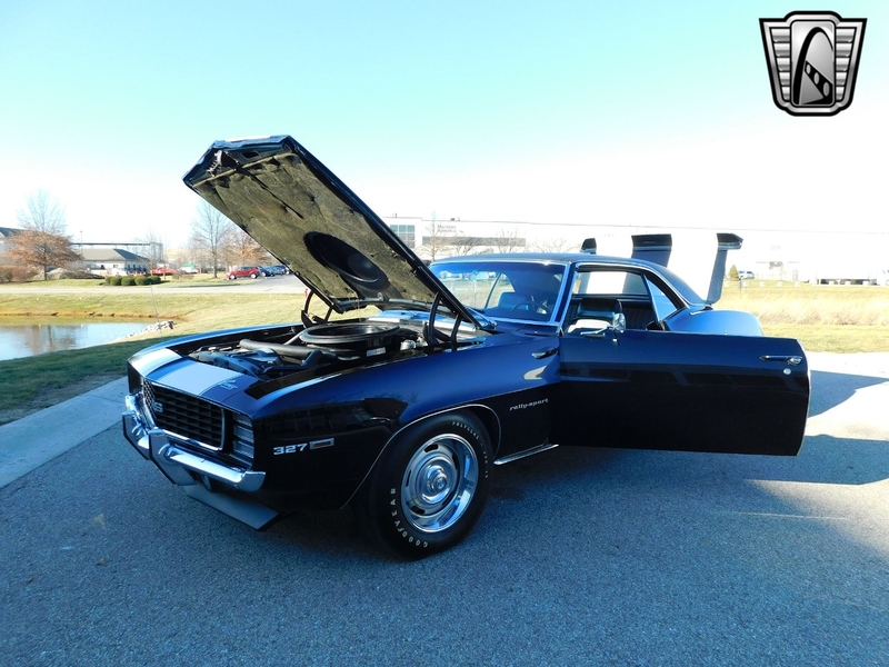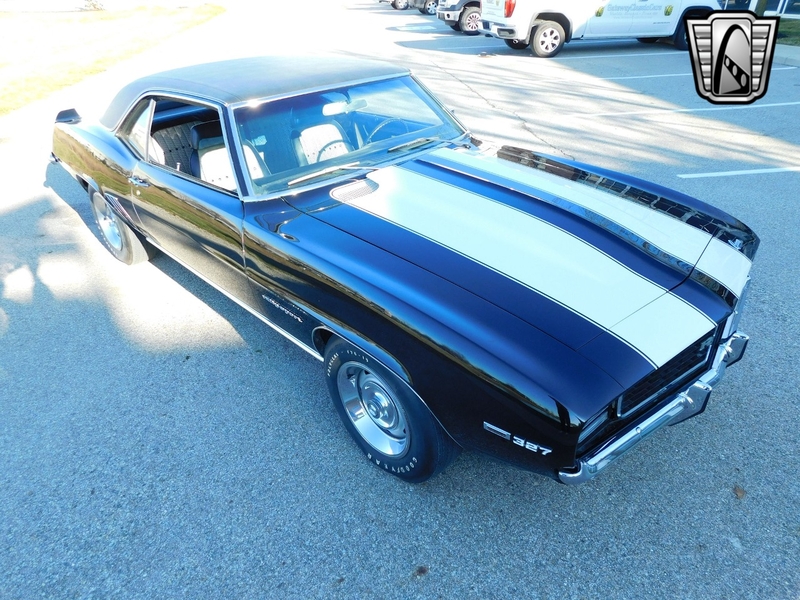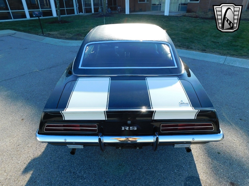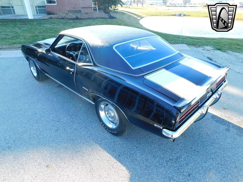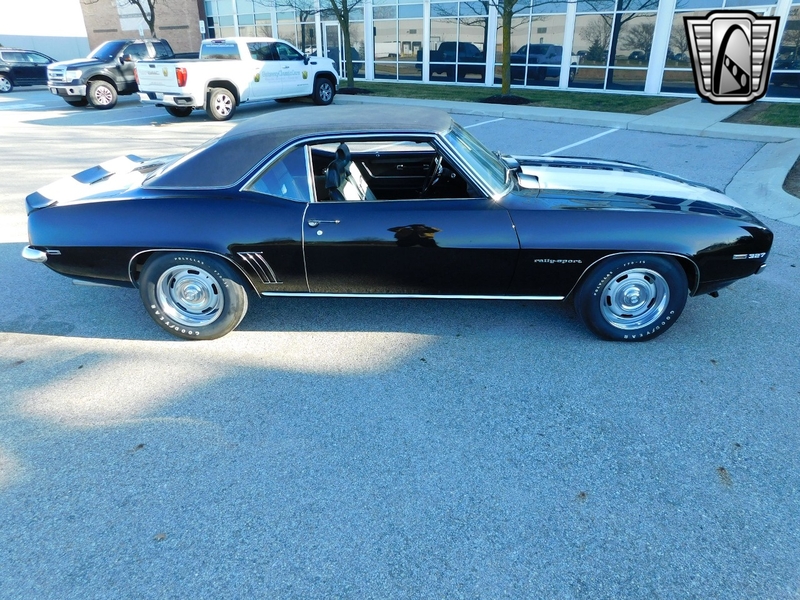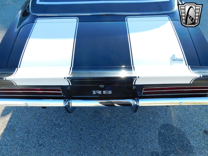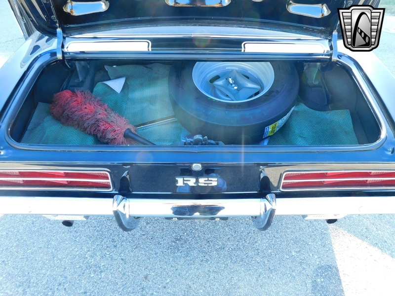 Description : Gateway Classic Cars is excited to offer this 1969 Chevrolet Camaro RS. The current owner obtained this beauty out of Georgia about 27 years ago and has enjoyed it since. Walking around this '69 one should notice the gloss black paint that is offset with white racing stripes. Adding to the curb appeal are chrome bumpers, cowl hood, black vinyl top, hideaway headlights, RS badging, fog lights, chrome accents, rear spoiler, dual exhaust, and 15" rally wheels wrapped in white letter Goodyear tires. The black interior flows well with the exterior theme. Some interior features include bucket seats, Houndstooth inserts, black vinyl, woodgrain dash inserts, black carpeting, seat belts, AM radio, and chrome accents. This Camaro mixes V8 performance with some comfort driving features. Options include air conditioning, power steering, and power brakes. Powering this piece of GM history is a 327 CID V8 engine rated at 300 horsepower mated to a 3-speed automatic transmission. Under the hood appears have a factory set up with a Hugger orange painted block, original styled air cleaner, and manifold. If you are looking for a 1st generation Camaro, this black and white example could be the one for you.
