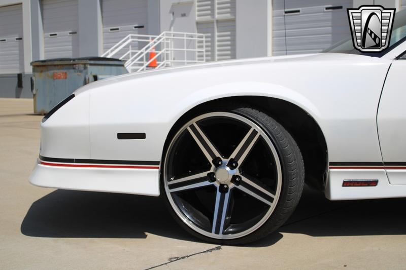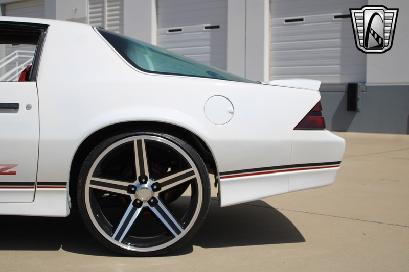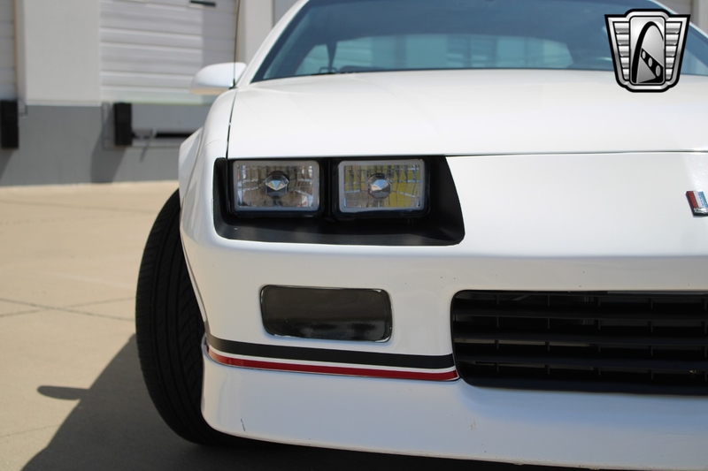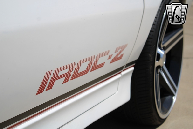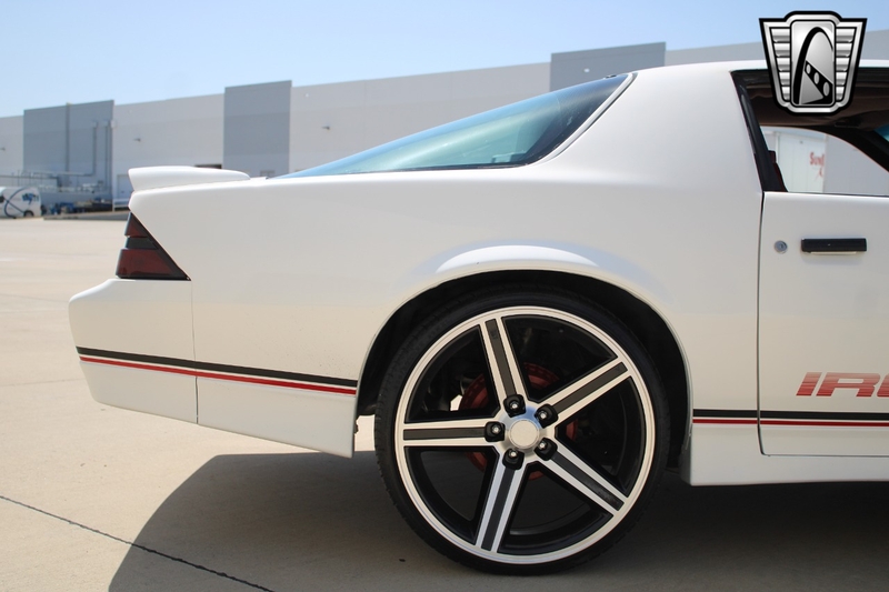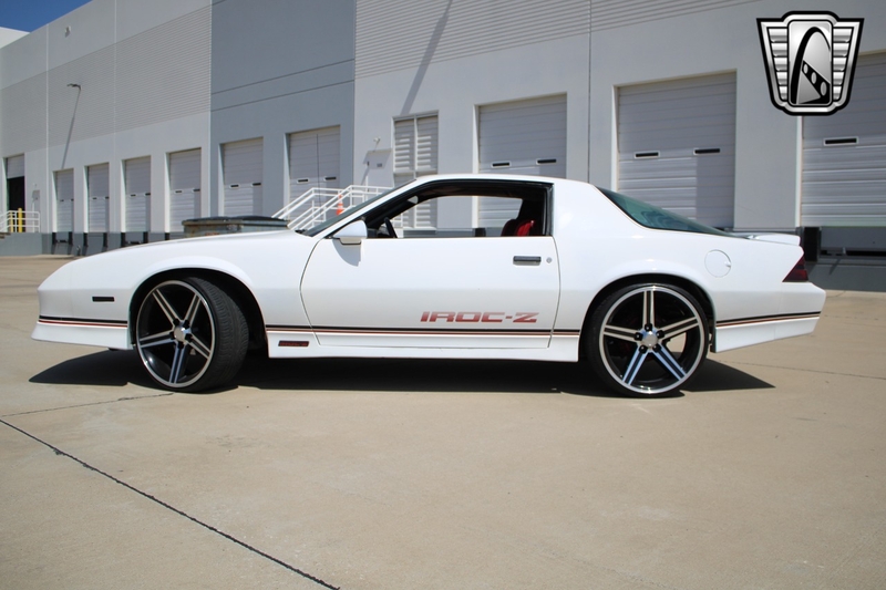 Description : Gateway Classic Cars of Dallas is proud to offer this sharp 1988 Chevrolet Camaro IROC-Z. According to the accident-free history report, this IROC-Z started its life in Arizona. Walking around this '88 one should notice the gloss white paint with black and red stripes. Adding to the curb appeal are 22" I-ROC wheels wrapped in radial tires, IROC-Z badging, tinted taillights, and a rear spoiler. The red cloth seats, red/black door panels, and red carpeting all flow well with the exterior theme. This car gives you a mix of comfort features with V8 performance. Features include air conditioning, AM/FM radio, power brakes, power locks, power steering, power windows, seat belts, tilt steering, etc. Powering this Camaro is a 5.0L V8 engine that is mated to a 700R4 4-speed automatic transmission. If you are looking for an IROC-Z to drive or show off, this could be the one for you.