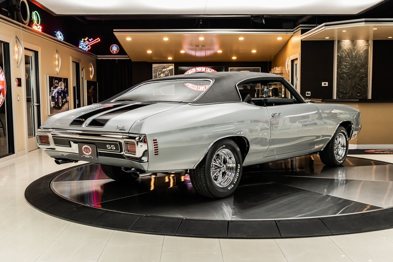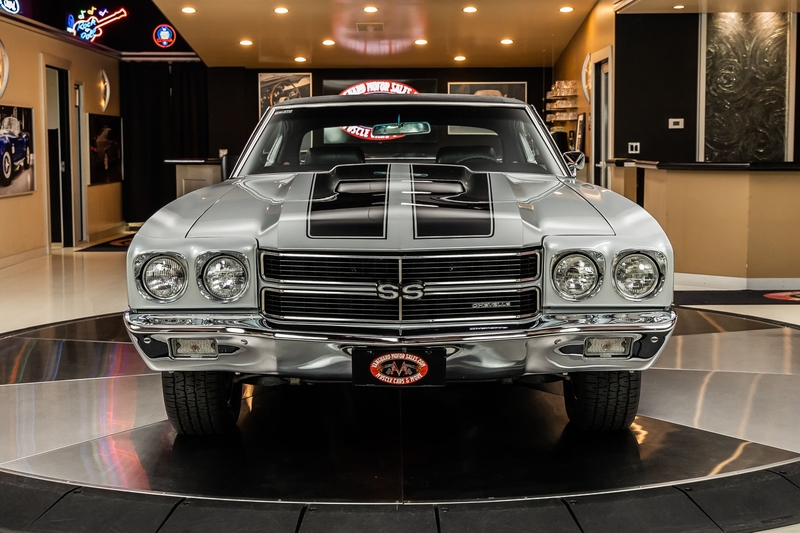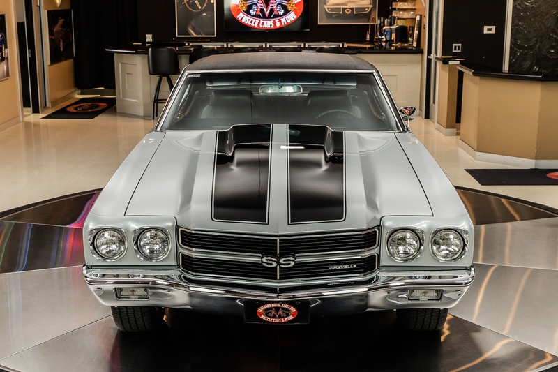 Check out this beautiful Cortez silver 1970 Chevelle SS! This Chevelle has been completely frame-off restored with less than 400 miles! Featured in Cortez silver with black center stripes and a black vinyl top! Under the hood sits a 396CI 325HP Big Block engine paired with a Muncie 4-Speed Manual transmission! Feeding that 396 is a Holley 4-BBL Carburetor sitting on a Edelbrock performer aluminum intake. Putting all that power to the ground is a set of Cragar mags wrapped in BFG Radial TA tires, along with a GM 12 bolt rear end with 3.55 gears. Additionally added to make this Chevelle drive sweet is a new exhaust system that gives us a nice rumble going down the road! This Chevelle also has PS & PB for a nice driving experience!