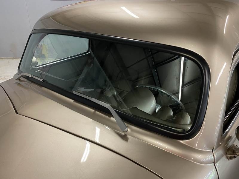 All Tan leather interior, custom inside, bucket seats that are power and recline. Custom console with Automatic, Vintage A/C & Heat control panel installed in console, Kenwood AM/FM/CD/DVD. '39 Chevy dash with digital gauges, Billet A/C vents mounted in dash. Brushed tilt column, Billet half wrapped steering wheel. Leather headliner, leather wrapped sill plates. custom door panels and arm rest, Billet flush mount door handles, custom pedal covers and Lokar gas pedal. Back seat area covered in Tan leather and Gray leather stripes. Speaker in back and door panels. Tan colored carpet. Beautiful inside.