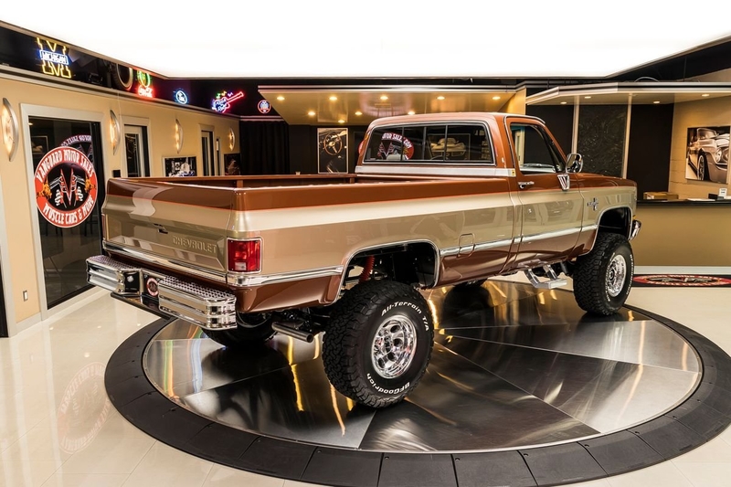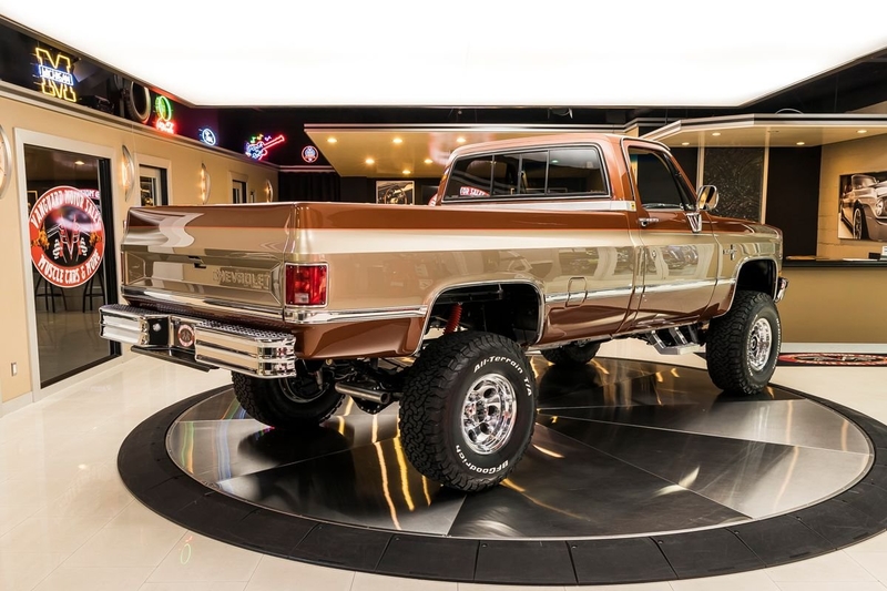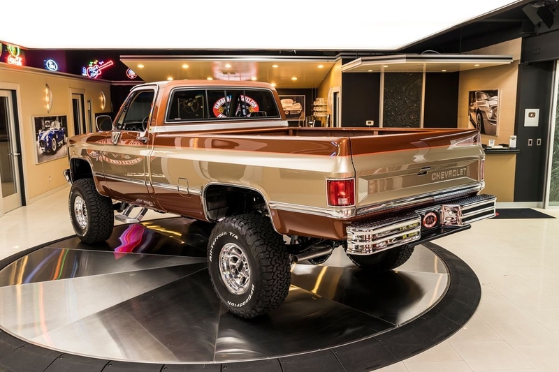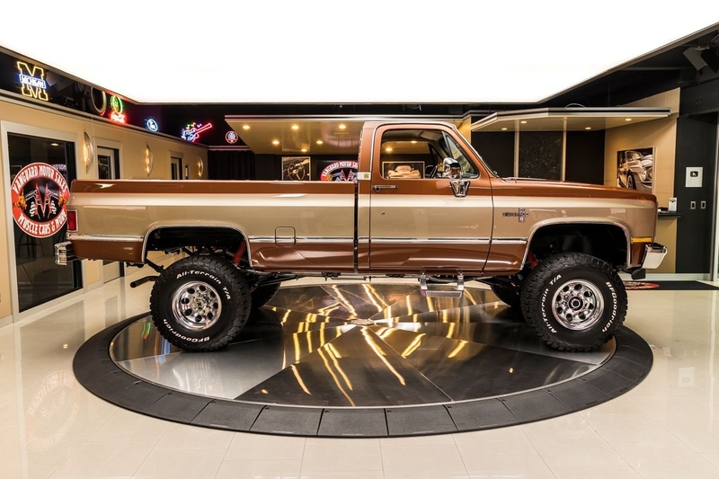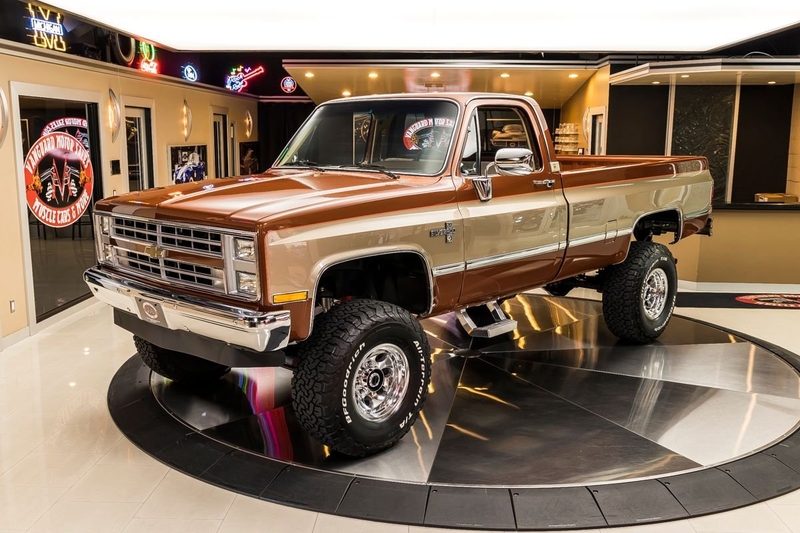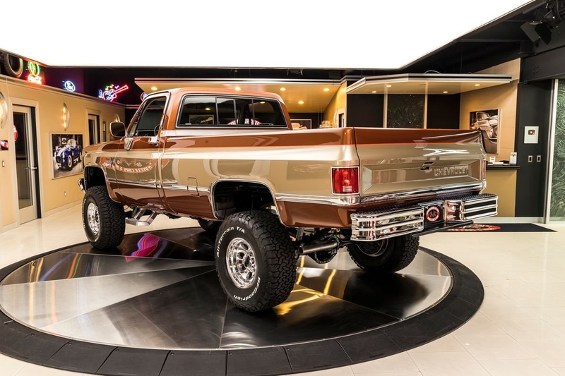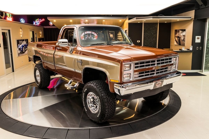 Check out this amazing 1987 Chevrolet Silverado V20 (3/4 Ton) 4X4 Pickup! This Silverado has undergone a meticulous Frame-Off Restoration that was completed in late 2020! The high attention to detail that this Chevy received during the restoration shows throughout and it looks incredible from top to bottom! Take a look at the beautifully straight body, Bronze and Gold Exterior Paint with Orange Pinstriping, Line-X Coated Bed, Tan Interior, 4' Rough Country Suspension Lift, 16' Aluminum Wheels with BFGoodrich All-Terrain T/A Tires, Full-Size Spare Tire, Dual Headlights, Chrome Bumpers, along with Polished Trim all around! Under the hood sits a GM 350ci V8 Crate Engine with an Edelbrock TBI Performer Intake Manifold and Electronic Fuel Injection. Power is sent to the tires through a TH350 3-Speed Automatic Transmission, New Process 208 Transfer Case, GM 14 Bolt Full Floating Rear Axle with 4.11:1 Gears and an Open Differential, and a GM 10 Bolt Front Axle with 4.11:1 Gears, an Open Differential, and Locking Hubs! This Silverado is a blast to drive and it's absolutely ready for your next adventure thanks to the 4-Wheel Drive! This '87 is also loaded with Air Conditioning, Power Steering, and Power Front Disc Brakes.