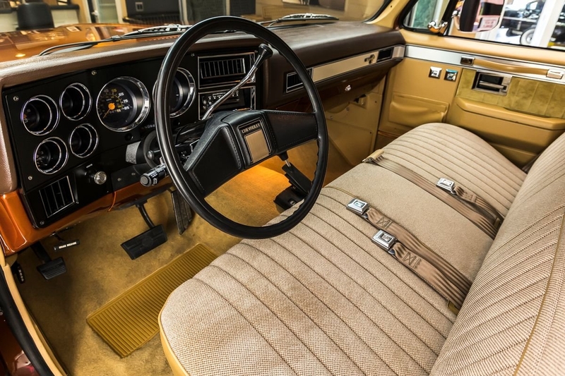 The interior of this '87 Silverado is beautiful and it's in pristine condition! Take a look inside to see this Chevy sporting Power Windows, Power Door Locks, Tilt Steering Column with a Column Shifter, 2-Spoke Steering Wheel, Bench Seating, Shoulder Seat Belts with a 3rd Passenger Lap Belt, Tan Cloth and Vinyl Upholstery, Tan Carpeting, Brushed Aluminum Trim, Stock Dashboard Gauges, Dashboard Clock (currently inoperative), along with an AM/FM Radio. The undercarriage of this Silverado looks incredible and it's overall condition is a testament to the high quality restoration! Take a look underneath to see the amazing condition of the Frame, Cab and Bed Floors, Dual Fuel Tanks and Fuel Lines, Brakes with Stainless Steel Brake Lines, Complete Drivetrain, Front and Rear Leaf Spring Suspension with Rough Country Shocks and Steering Stabilizers, along with the Dual Exhaust System that's fitted with Flowmaster FlowMonster Mufflers.