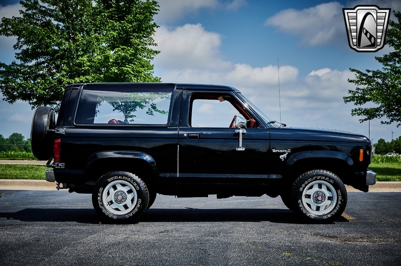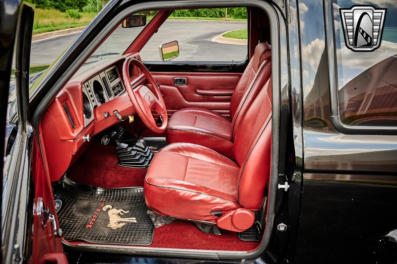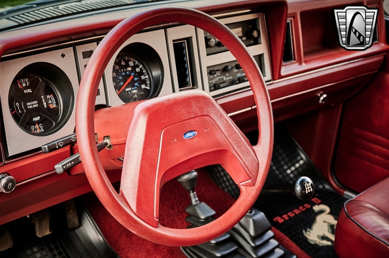 The first Bronco II was debuted in 1982 as a compact SUV based on a shortened Ranger pickup truck with an all-new chassis. From '80-'86 the Bronco's were fitted with a Dana 44 front axle with Ford Twin Traction Beam front suspension. Under the hood we have a 2.8L V6 engine backed by a 4-Speed manual transmission with overdrive. The color combo really does this car justice too. Painted black with cherry red interior with black accents, it's bound to gain the attention it deserves. This vehicle features the following options: Air Conditioning, AM Radio, Cruise Control, Power Brakes, Power Steering, Seatbelts, Performance Tires & Tilt-Steering Wheel.