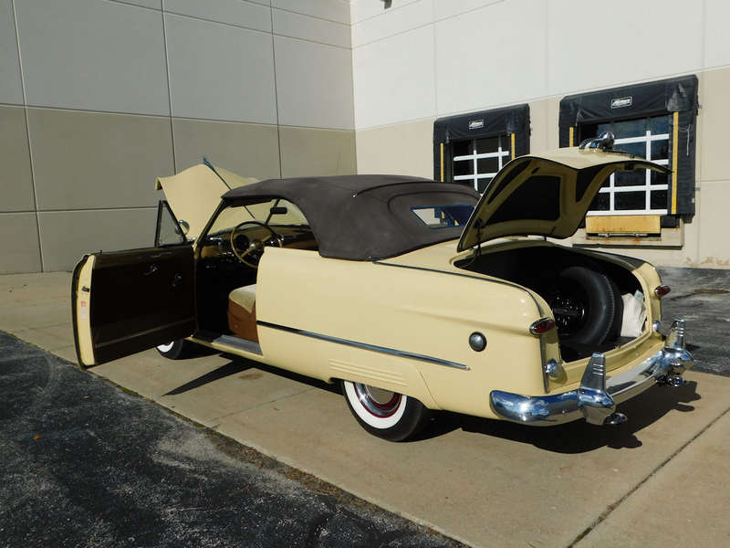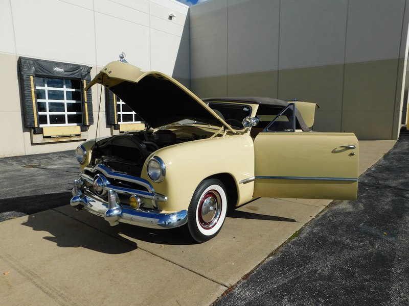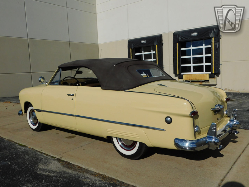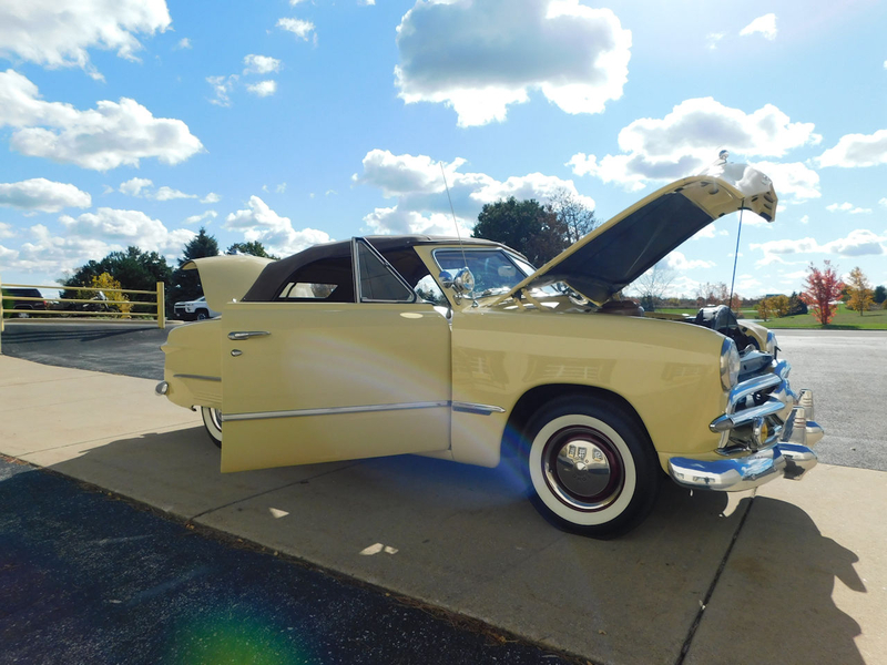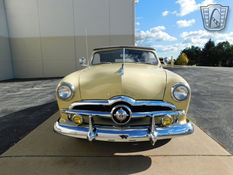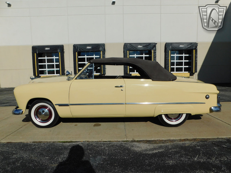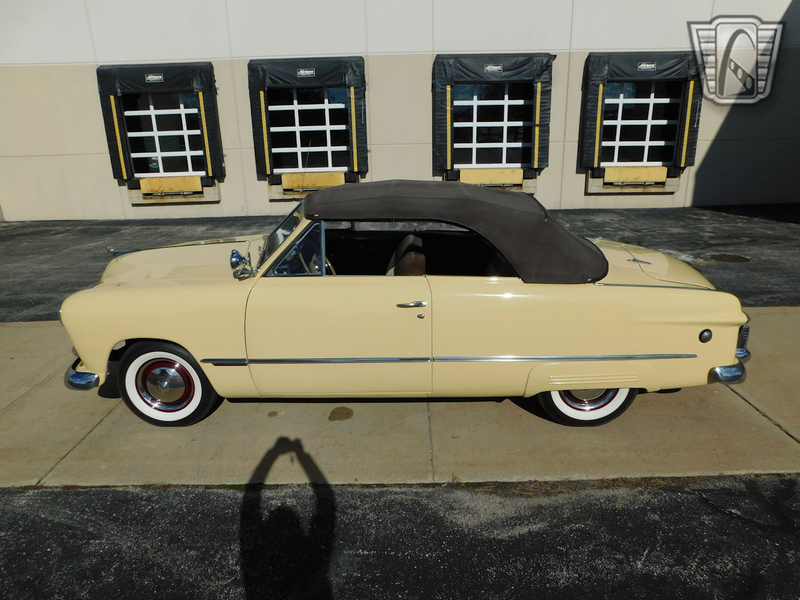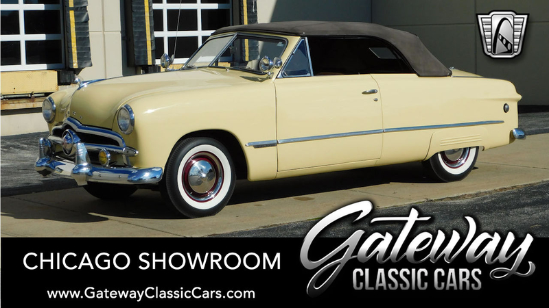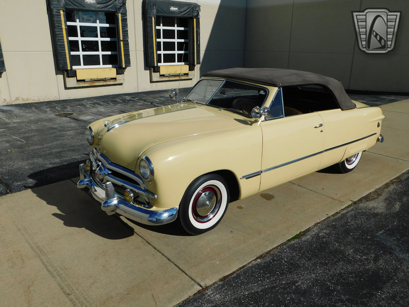 Description : Gateway Classic Cars of Chicago is proud to present this clean 1949 Ford Custom convertible. This Ford is wearing a beautiful coat of Canary Yellow over a Brown cloth interior and brown convertible power top. Under the hood sits a Flathead V8. A 3-speed column-shifted manual transmission puts power to the rear wheels. Power on the ignition, pull the choke out a smidge, and press the starter button to bring this vintage beauty to life. We are willing to bet dollars to donuts that this beautiful Ford will put a smile on your face!