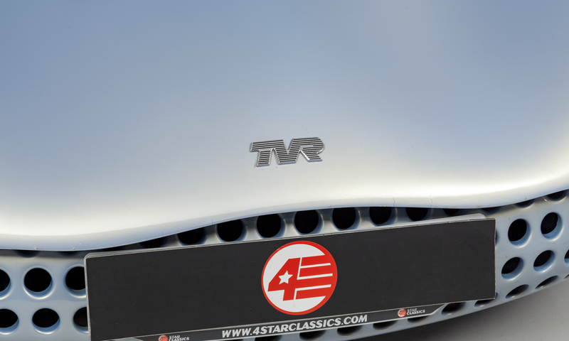 This striking example is finished in desirable Crystal Topaz, a quintessential TVR colour that’s sure to draw many admiring glances out on the road. The pearl effect paint presents to an excellent standard throughout with a deep iridescent shine to report across every panel. The sleek fiberglass bodywork has held up especially well and is for the most part excellent. Being really picky there are a couple of minor surface cracks on the leading edge of the service bonnet as well a few small chips around the headlights, but certainly nothing to detract from the car’s overall highly impressive appearance. Better still, the underside is also remarkably fresh with no corrosion issues in any of the common TVR weak spots.