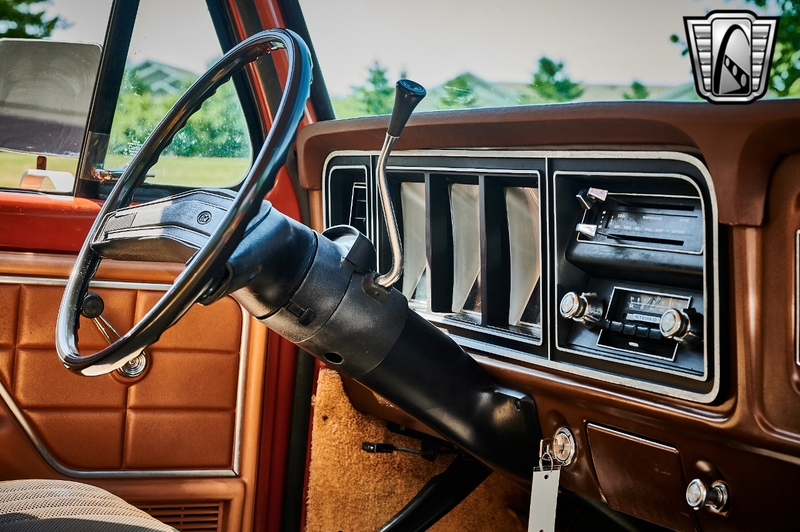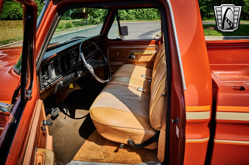 A classic piece of American automotive history. This truck is a standout with its bold orange exterior, a color that is sure to turn heads wherever you go. The interior is equally as striking, featuring a bright yellow color scheme that adds a fun and retro touch to your driving experience. Under the hood, you'll find a powerful 351CID Modified V8 engine, providing the strength and reliability that Ford trucks are known for. This engine is paired with an automatic transmission, offering a smooth and effortless driving experience. This 1978 Ford F100 isn't just about looks and power, it's also equipped with features designed for your comfort and convenience. Enjoy the luxury of air conditioning, a feature that is sure to keep you cool and comfortable during those hot summer drives. The truck also comes with an AM/FM radio, allowing you to enjoy your favorite tunes or catch up on the latest news while on the road. For your safety and ease of driving, this Ford F100 is equipped with power brakes and power steering. In summary, this 1978 Ford F100 offers a unique combination of classic style, powerful performance, and convenient features. It's a truck that stands out from the crowd, offering a driving experience that is as enjoyable as it is distinctive.