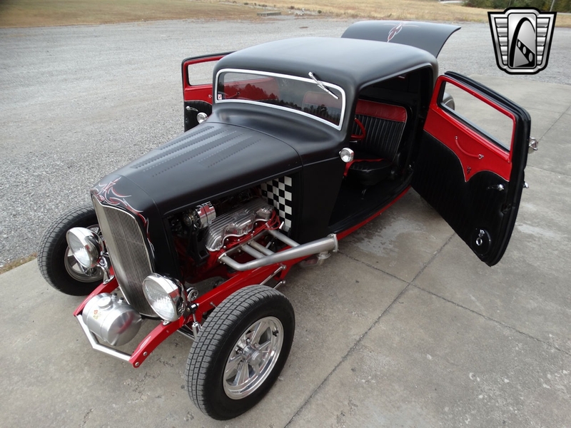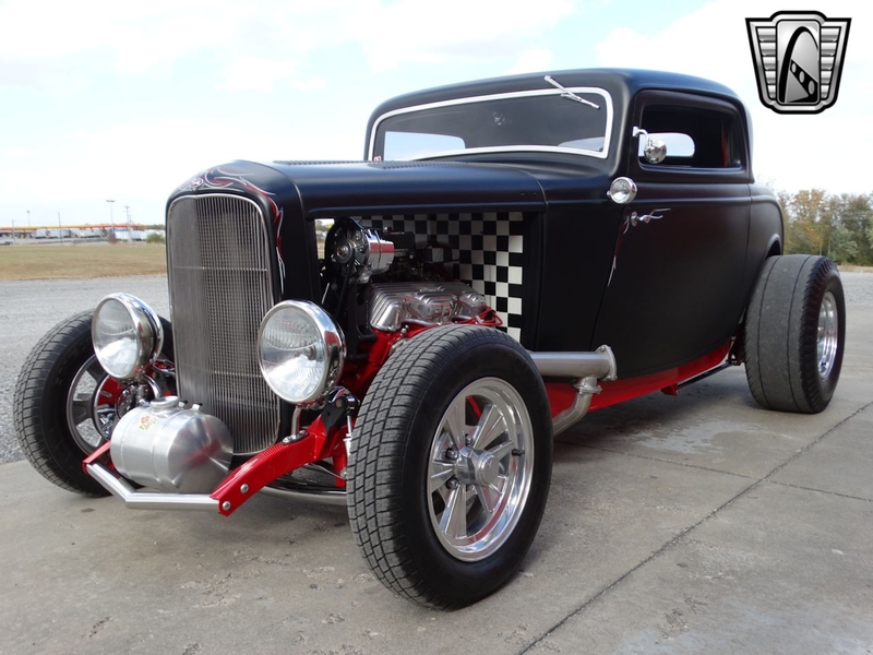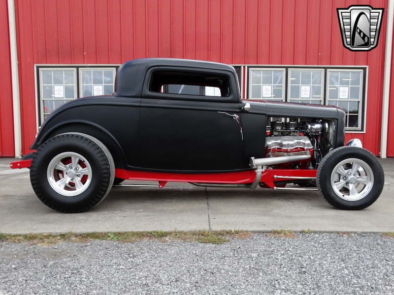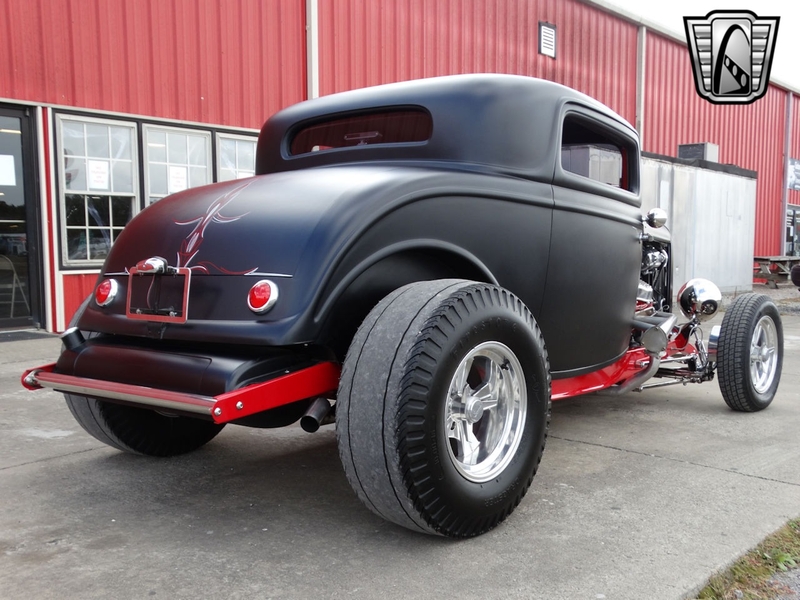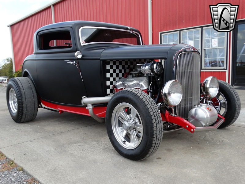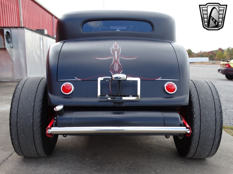 Description : Gateway Classic Cars of Louisville is proud to present this 1932 Ford Model 18 Deuce Coupe! Rolling into 1932 Ford wanted to offer an even wider array of trim levels and options to compete in the market. There were two-door roadster, two-door cabriolet, four-door phaeton, two and four-door sedans, four-door "woodie" station wagon, two-door convertible sedan, panel and sedan deliveries, five-window coupe, a sport coupe (stationary softtop), the three-window Deluxe Coupe, and pickup. The coupes are widely sought after for turning into hot rods! This model is a 3-Window Deuce Coupe and is a Model 18. The vin starts with 1818 which tells you she is a Model 18 and a factory 8-cylinder car! The satin black paint with hand painted decals looks really good. Frame is painted red and looks sharp underneath. Body is fiberglass, hood is metal. The red and black leather interior looks great and go well with the color tones of the car. Powering this street rod is rebuilt 409ci V8 mated to a rebuilt Turbo 350 3-Speed Automatic transmission. She is sporting a Ford 9" rear end. Car received a full restoration, including the powertrain and comes with folders full of receipts. Per the owner the work was completed in 2012, many receipts showing dates back in 2010-2012. With only 5k miles on her since restoration there is a lot of fun to be had from this hot rod! Current owner acquired her from a private owner. Title is clean and clear and ready to be transferred into your name now! Options on this Ford include: A/C, Power Brakes, Power Windows, Leather Interior, Tilt Wheel, AM/FM Radio, Seatbelts, Custom Wheels, and Radial Tires. This 1932 Ford Model 18 Deuce Coupe is offered by our Louisville Showroom and can be seen in greater detail including 100+ HD pictures and an HD video at http://www.GatewayClassicCars.com. For additional information please call our knowledgeable staff at (812) 294-1555 or email us at louisville@GatewayClassicCars.com
