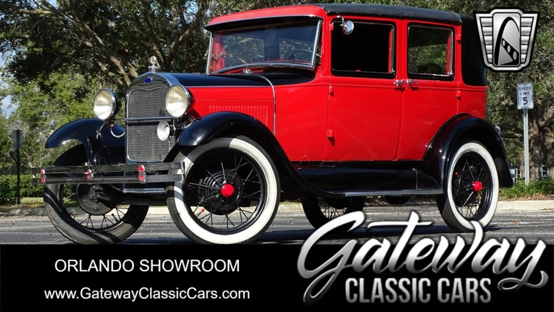 Description : Gateway Classic Cars of Orlando is proud to offer this sharp and snazzy 1929 Model A. Ford's Model A was their follow up to the revolutionary Model T. With a more user friendly design the Model A was popular and successful in its own right. This 1929 4 door sedan is finished in a handsome red and black 2 tone. With it's black fenders, wire wheels and white wall tires this Model A is sharply dressed. As you walk around the vehicle you'll notice nice details like the vinyl roof and rear mounted spare tire. According to the owner the interior is all original. Imagine the memories in here! Under the hood is a flathead 4 cylinder and is paired to a 3 speed manual transmission! If you're looking for a sharp example of American Car History, this is the one you want to own! Options include spare tire, cloth interior and wire wheels.