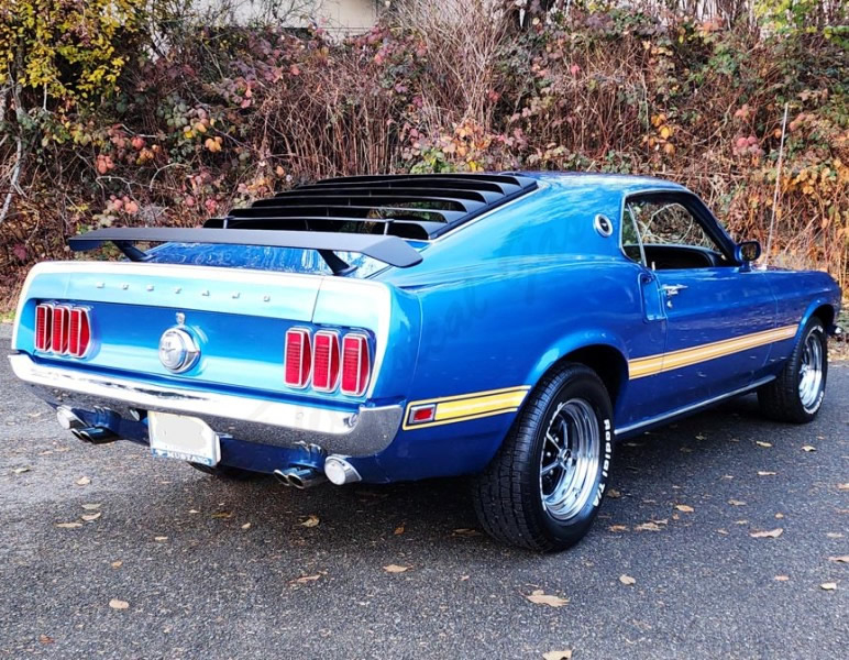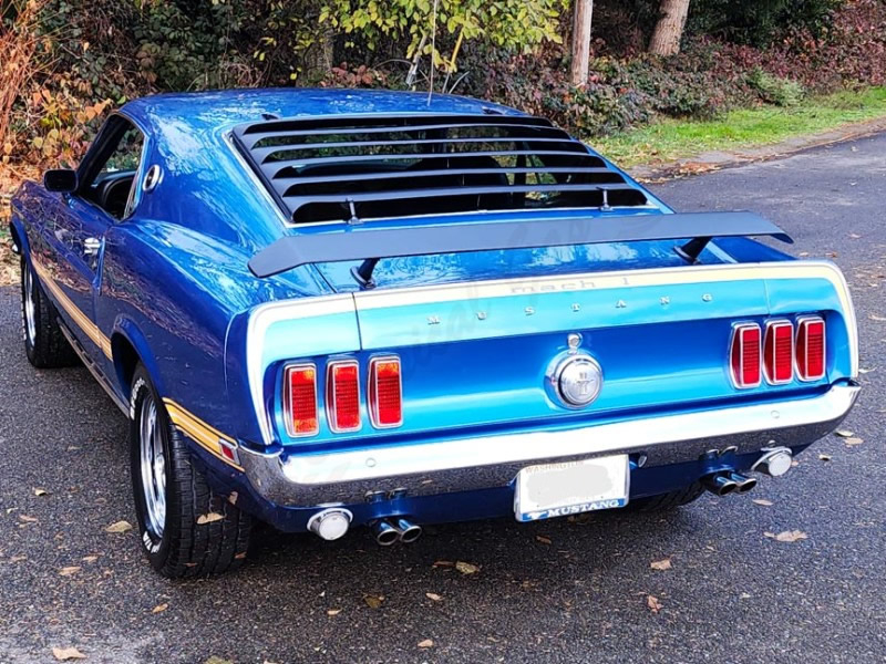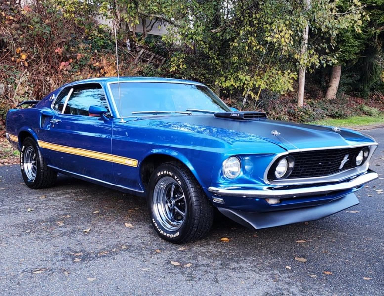 General description : 1969 Ford Mustang Mach 1 A legend for 54 years in the making 1969 Ford Mustang Mach 1 with 351W. Exactly 54 years ago the '69 Mach 1 took the stage and has remained thee Mustang to have to collectors, enthuse and all-around car guys alike. The '69 is dressed to kill in show Acapulco Metallic Blue (3077-A) with black-out hood treament paint. Fully loaded being a true Mach 1 with a Marti Auto Works (deluxe) report. Stay ahead of the game with this rust-free legend VIN 9F02M165305. The '69 has all new moldings and body seals for the windows, quarter windows, rear window, doors, hood and trunk. All trim, moldings, door handles, front and rear bumpers are new this includes scuff plates, grille moldings, window rank handles, door handles, roof rails all done in show chrome! New front air dam and spoiler. New hood hinge and springs. Comes with all the paperwork. The stunning black interior has a new dash, door panels, carpeting and custom bucket seats by TMI. All the woodgrain in dark walnut is clean and bright. Even has the deluxe wood grain panel with clock and Mach 1 script. Keeping to the originality has the AM/FM radio. Beautiful custom embroidered "Running Horse" non-slip mats. Has a modern Vintage Air (A/C 20-174) sure fit system and custom venting. To keep you warm a new heater box, hoses, and controls that all work smooth. The stock suspension has all been restored. All new strut rod, and bushings and power steering controls. Ford 9" Trac Lock 31 spline, Nitro Worm Gear POSI with Billet Hat R/G bolts with 3.25 gears and a Friction Modifier. New rear leaf springs, shackles, and shocks. Cut body roll and increased cornering force with a heavy-duty performance anti-sway bar. Body stiffening export brace exactly like original but made with thicker metal. The '69 achieve a vastly improved balanced handling. The 351W-4V (5.8L) Cobra sporting the "Shaker Ram Air Cleaner" with side 351 script is as cool as it gets! Updated performer Edelbrock 1406 600 cfm carburetor. Champion all aluminum high density core radiator. Heavy 17" Flex fan and a Champion electric fan keep the '69 cool under any driving condition. The deep rumble comes from Exhaust by Ford Powertrain (FPA) 3x2.5" dual with an "X" pipe, and long tuned headers. Running a built 3-speed automatic transmission. The 351W has been Power Tune by Whipple Motors. All work was done with odometer stated 71,214 miles. Miles to date is 75,889 so build has 4,675 miles. All paperwork and Marty Report go with sale. Add it to your collection for $58,500.00! This car is located in Edmonds, Washington.