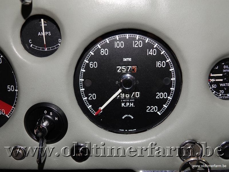 ?Lowered price from €78.500- €72.500? Overdrive and Bell inox exhaust Fixhead Coupe Initially the XK 150 was available in Fixed Head Coupé (FHC) and Drophead Coupé (DHC) versions. The Roadster (XK150 OTS - Open Two-Seat) was launched in 1958. Minimal rear seats were fitted in the coupés. Although bearing a family resemblance to the XK120 and XK140, the XK150 was radically revised. A one-piece windscreen replaced the split screen, and the wing line no longer dropped so deeply at the doors. The widened bonnet opened down to the wings, and on the Roadster the bulkhead was moved back 4 inches (102 mm) to make the bonnet longer. The car was available at various times in Red, Pearl Grey, White, Indigo Blue, Claret, Cotswold Blue, Black, Mist Grey, Sherwood Green, Carmen Red, British Racing Green, Cornish Grey, and Imperial Maroon. The XK140's walnut dashboard was replaced by one trimmed in leather. On the early Drophead Coupés, the aluminium centre dash panel, which was discontinued after June 1958, had an X pattern engraving similar to the early 3.8 E-type. Thinner doors gave more interior space. On the front parking lights, which were located atop the wings (fenders), a little red light reminded the driver the lights were on. Suspension and chassis were very similar to the XK140, and steering was by rack and pinion; power steering was not offered. The standard engine, the same as fitted to the XK140, was the 3.4 litre DOHC Jaguar straight-6 rated at 180 SAE bhp at 5750 rpm but most cars were fitted with the SE engine whose modified cylinder head and larger exhaust valves boosted the power to 210 SAE bhp at 5500 rpm. Twin 1.75-inch (44 mm) SU HD6 carburettors were fitted. While the first XK150s were slower than their predecessors, the deficit was corrected in the spring of 1958 with a 3.4-litre "S" engine whose three 2-inch (51 mm) SU HD8 carburettors and straight-ported cylinder head increased power to a claimed 250 SAE bhp. For 1960, the 3.4 litre engine was bored to 3.8 litres, rating this option at 220 hp (164 kW; 223 PS) in standard tune or 265 hp (198 kW; 269 PS) in "S" form. A 3.8 litre 150S could top 135 mph (217 km/h) and go from 0–60 mph in around 7.0 seconds. Production ended in October 1960, and totaled 2265 Roadsters, 4445 Fixed Head Coupés and 2672 Drophead Coupés Specifications. Bodywork Length – cm (in): 447 (176) Width –cm (in): 164 (64.6) Height – cm (in) : 136 (53.7) Wheelbase – cm (in) : 259 (102) Weight – kg (lb): 1430 (3156) Mechanics. Engine : straight-6 3442 cc (210 ci), front-mounted Valves : 12 Fuel system : 3 SU HS6 carburettors Gearbox : 4 speed + overdrive, manual Maximum power : 193 bhp at 5500 rpm Torque : 275 Nm at 3000 rpm. Maximum speed : 227 km/h (141 mph)