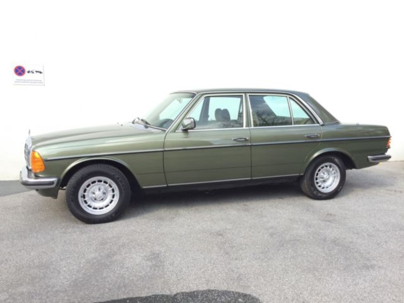 schöner und gut erhaltener 280E der Baureihe W123 mit Automatikgetriebe. Außen in Zypressengrün-Metallic und innen Bestuhlung in hochwertigem Velours mit Armlehne ausgestattet, ebenfalls in grün. Die Fahrzeuge der ersten Serie verfügen zudem über Eselohren-Kopfstützen und den klassischen Türverkleidungen mit dicken Pins.