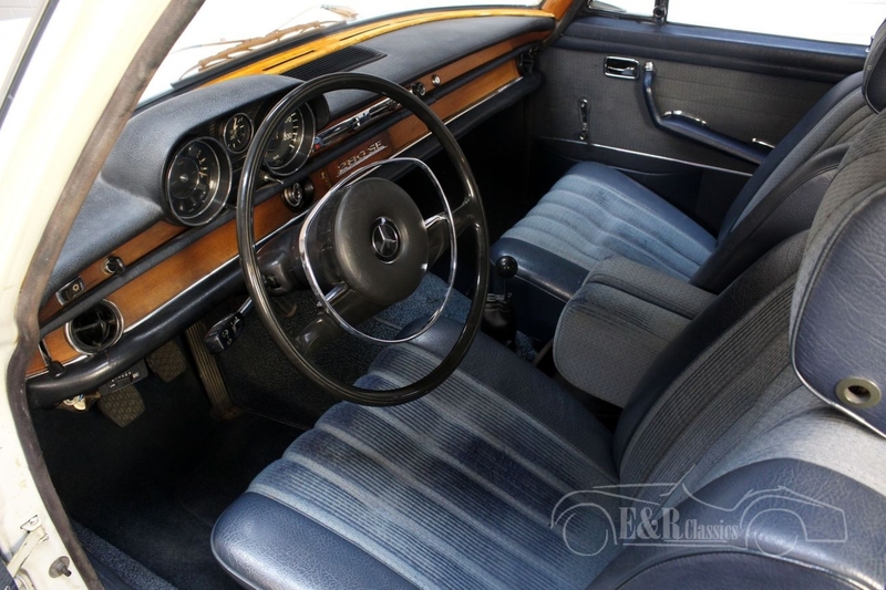 This beautiful Mercedes-Benz 280SE was built in 1968. This luxurious German limousine from the W108 series is one of the predecessors of the Mercedes S class. This copy is made of a beautiful Papyrusweiss paint (colour code 717G) with beautiful chrome. The interior with blue upholstery and wooden inserts offers generous space and comfort for both the driver and passengers. The very flexible 2778cc 6-cylinder injection engine is linked to the manual gearbox with makes this Mercedes drive great. In short, a beautiful Mercedes 280SE in good condition.