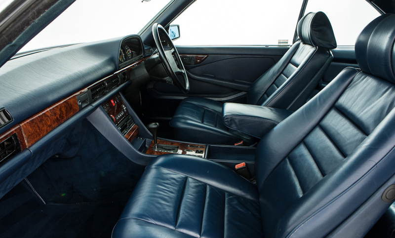 Classic White paintwork, Royal Blue leather upholstery, 15-hole light alloy wheels, Heated and electrically-adjustable front seats with driver and passenger memory function, Electric sunroof, Electric windows front and rear, Boot-mounted Engel refrigerator (factory option code 307), Limited slip differential, Cruise control, Automatic air conditioning, Self-levelling rear suspension, Leather steering wheel, Wood veneered dash and centre console, Front seat rear luggage nets, Folding rear headrests, ABS, Headlamp washers, Front fog lights, Heated door mirrors with nearside electric adjustment, JVC CD player, Automatic electric aerial, Mercedes first aid kit, Spare alloy wheel, Spare key.