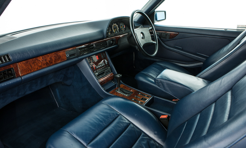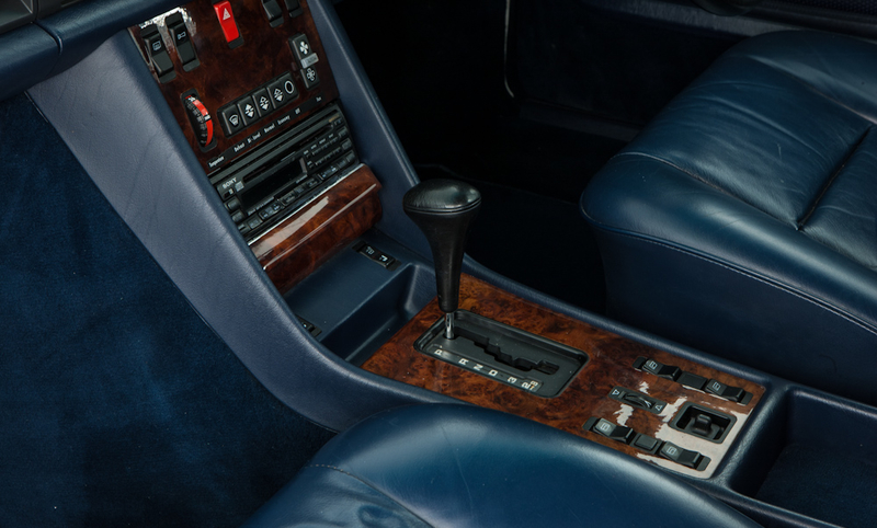 The Royal Blue upholstery makes for a striking contrast against the brilliant white exterior. Despite now 35 years old the leather remains surprisingly supple, with only a few discreet marks and no major wear to report on close inspection. A flagship model at the time, the 500SEC was well specified with climatic air conditioning, heated and electric front seats with memory, cruise control, an electric sunroof and electric windows, this particular example also boasting the rare factory option ‘307’ – a refrigerated cool box mounted in the boot! The lavish interior is further appointed with padded armrests front and rear, glossy walnut trim, a leather steering wheel, and CD player. The only real negative to be report is the headlining, which has begun to sag.