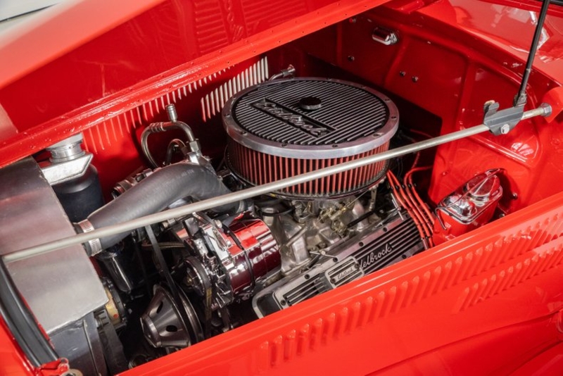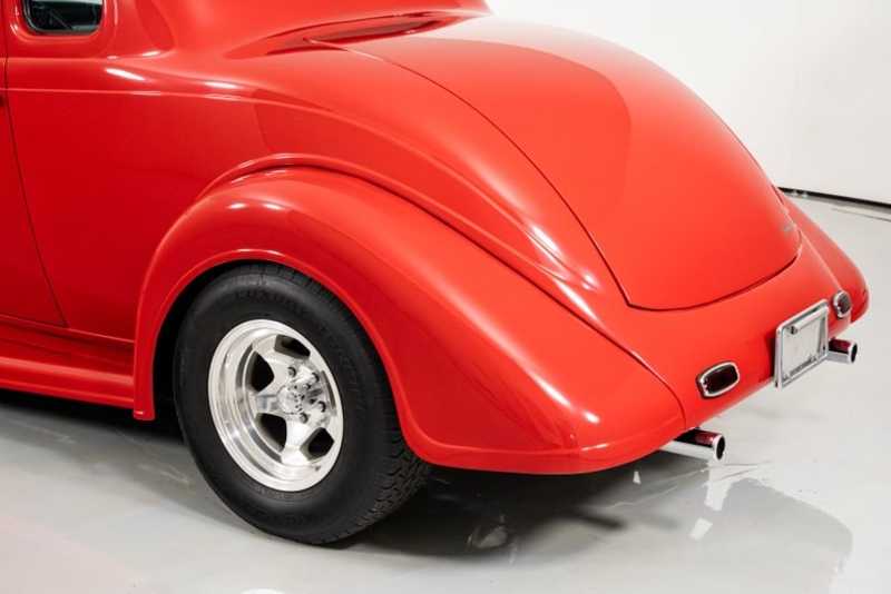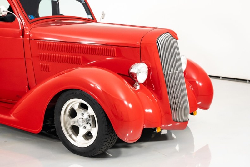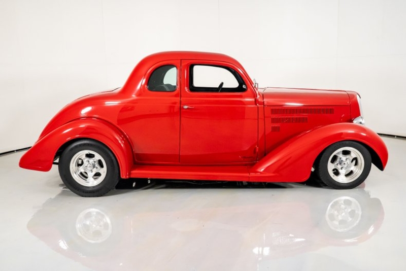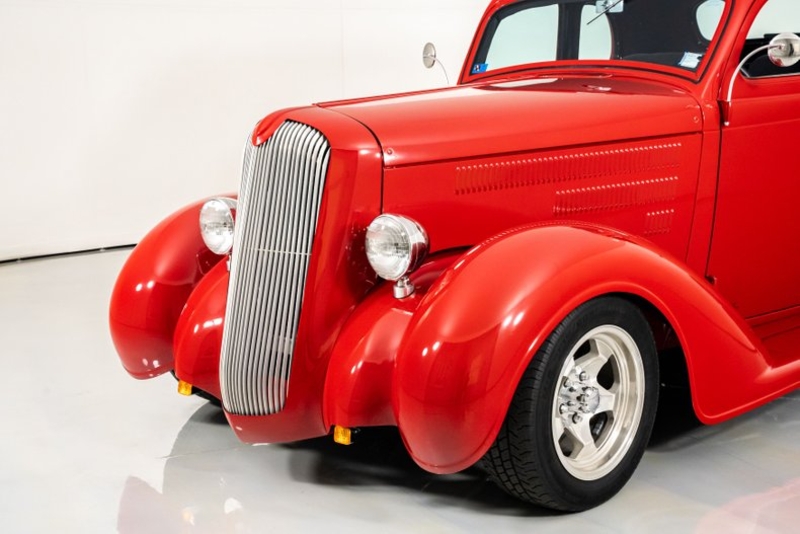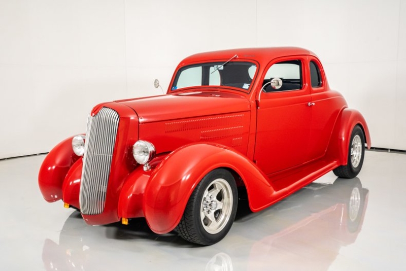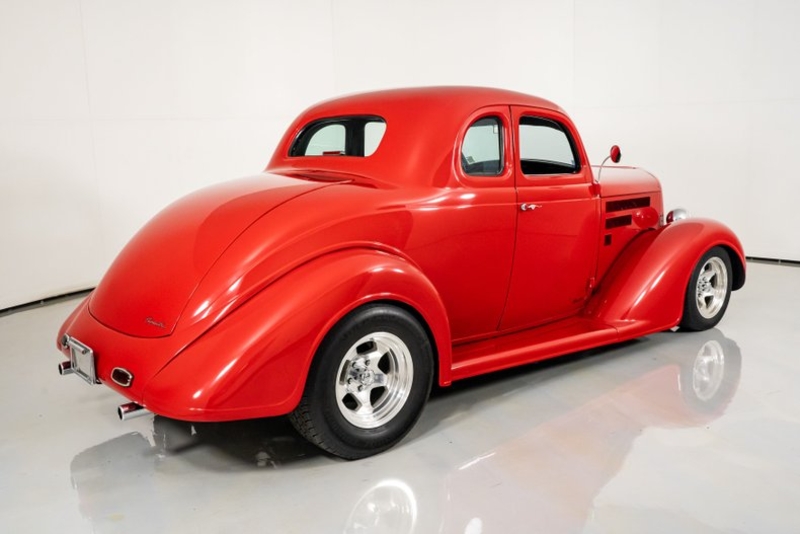 This 1936 Plymouth Coupe for sale has a 350 C.I. V8 Engine, TH350 3-Speed Automatic Transmission, 10 Bolt Rear End with 3.08:1 Ratio, Victory Red Exterior, Gray Interior, Steel Body, Fiberglass Fenders and Running Boards, Mustang II Front Suspension, Rack and Pinion, Disc Brakes, Ididit Steering Column, Lokar Shifter, Vintage Air Heat & A/C, Power Steering, Polished Aluminum Wheels, Featured in April 2004 Street Rodder Magazine, Beautiful Magazine Featured Plymouth Street Rod!