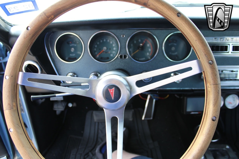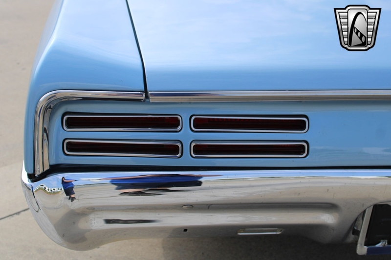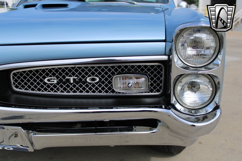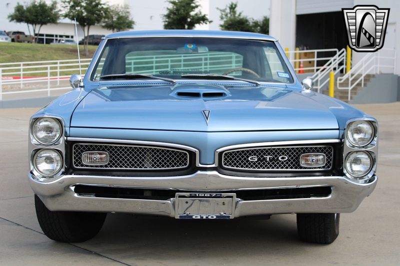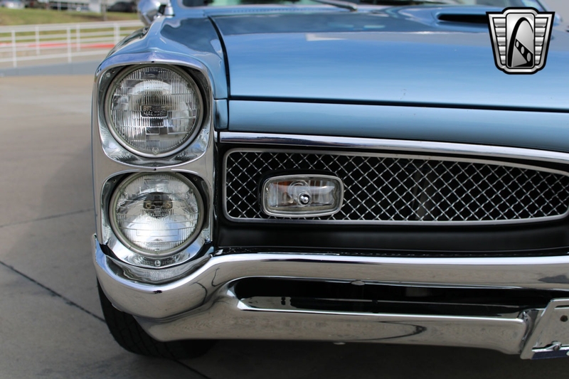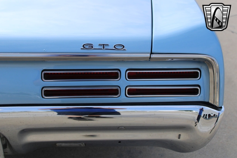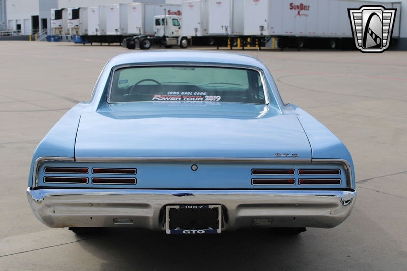 Description : Gateway Classic Cars of Dallas is excited to present this sharp 1967 Pontiac GTO Restomod. The current owner obtained this GOAT about 5 years ago, here in Texas. Walking around this stunning '67, one should notice the Light Blue gloss paint that was redone in 2008 in Texas. Adding to the curb appeal are 15" PMD alloy wheels wrapped in redline radial tires, chrome accent trim, double stack headlights, GTO taillights, GTO hood, dual exhaust, and chrome bumpers. The black vinyl interior flows well with the exterior color theme. This GTO mixes fuel injected V8 performance with modern comfort features. It can be and has been taken cross country on a Power-Tour. Some comfort features include air conditioning, Retro-sound AM/FM radio, power brakes with disc, power steering, seat belts with shoulder, front bucket seats, vinyl seats, etc. Powering this 242 VIN GTO is a Fuel injected Remanufactured 400 CID Pontiac Short block V8 that has about 500 miles since being installed (odometer read 19,269 when installed). This powerplant is mated to a Tremec TKO-600 5-speed manual transmission (installed with a 15,343-odometer reading). Pushing this power to the ground is a Pontiac rear end with 3.23 gears. Some notable added features include the Holley Super Sniper EFI system, electric fuel pump, an aluminum radiator with dual electric fans, and even speakers hidden under the seat. If you are looking for a real 242 VIN GOAT with all of the modern upgrades one should wish for, this is the example for you.