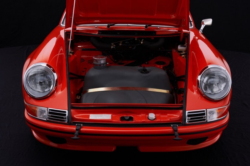 This Porsche 2.5 ST coupe is rebuilt to new condition in our workshop on the basis of a 2.4 coupe in accordance with appendix "K". The vehicle is painted in the color blood orange 018. A black interior made of lightweight carpet with 2 original Recaro bucket seats is installed. The engine and gearbox is completely reworked with many new parts according to the original specifications. The vehicle is built to be authentic and contemporary. For example, the sheet metal extensions, an original balsa wood hood installed at the front and an aluminum engine cover. All other add-on parts of the vehicle such as chassis, brake, oil and petrol system, electrics, rims and interior are new or brought to new condition. The 911 ST is offered with TUV/AU and a classic appraisal with grade 1. Model year: 1972/73 Engine type/number: • 2.5 ST engine. The vehicle has the standard of a new car. Please understand that viewing is only possible by appointment - please email: mh@early911s.de or mobile: 0049 172 88 40 640. We have a fleet of over 400 vehicles. Errors and changes excepted.