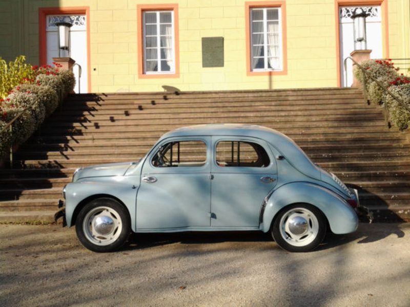 General description : Offiziell präsentiert wurde das Fahrzeug im Oktober 1946 auf dem Pariser Autosalon. Die Bezeichnung 4CV steht, wie beim Citroen 2CV für die französische Steuerklasse "CV". Der 4CV hat wie der VW-Käfer einen Heckmotor und Heckantrieb, anders als dieser aber keinen luftgekühlten Boxer-, sondern einen wassergekühlten 4-Zylinder-Reihenmotor der eigens neu entwickelt wurde. Die Serienproduktion begann 1947 und lief bis 1961. Insgesamt wurden ca. 1,1 Millionen 4CV gebaut. Der Spitzname "Cremeschnittchen" stammte ursprünglich aus dem Saarland. Der Motor mit seinen 741 ccm leistete Anfangs 17 PS und wurden später auf 26 PS erhöht. Hier wird ein wunderschönes Fahrzeug angeboten, welches aus einer spanischen Sammlung stammt. Die Aussenfarbe ist Hellblau und der Innenraum mit seinem roten Kunstleder versprüht eine Menge Charme. Das Fahrzeug hat deutsche Papiere und eine H-Zulassung. Verkauf erfolgt im Auftrag aus einer privaten Sammlung.