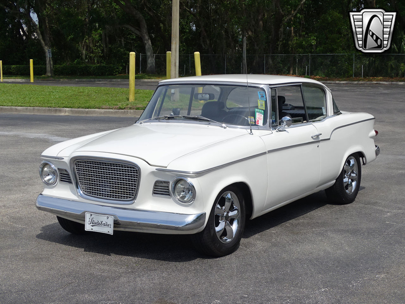 Description : Gateway Classic Cars of Orlando is proud to offer this unique 1959 Studebaker Lark. Studebaker's Lark was an innovative car and gave the automaker a head start in the compact segment. With a variety of drivetrain options and body styles the Lark was popular with all sorts of buyers. This 1959 Hardtop Coupe was arguably the most stylish iteration with pillarless window openings and a tasteful amount of chrome. Finished in white this Lark looks handsome sitting atop 5 spoke chrome wheels. The interior is finished in black and features late model bucket seats that make cruising more comfortable than ever. Under the hood is a Chevy 350 sourced from a 1976 Avanti. Paired with a 700R4 transmission and a Dana 44 rear end with 3.70 gears imagine how this car can get up and go! If you're looking for a stylish classic that's a bit different than your cruise in crowd but still has plenty of muscle to impress, this is the one you want to own! Options include air conditioning, AM/FM/CD stereo, spare tire, power brakes, power steering, seat belts, vinyl interior and alloy wheels wrapped in radial tires.