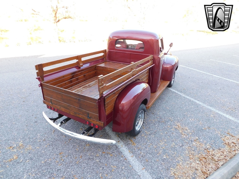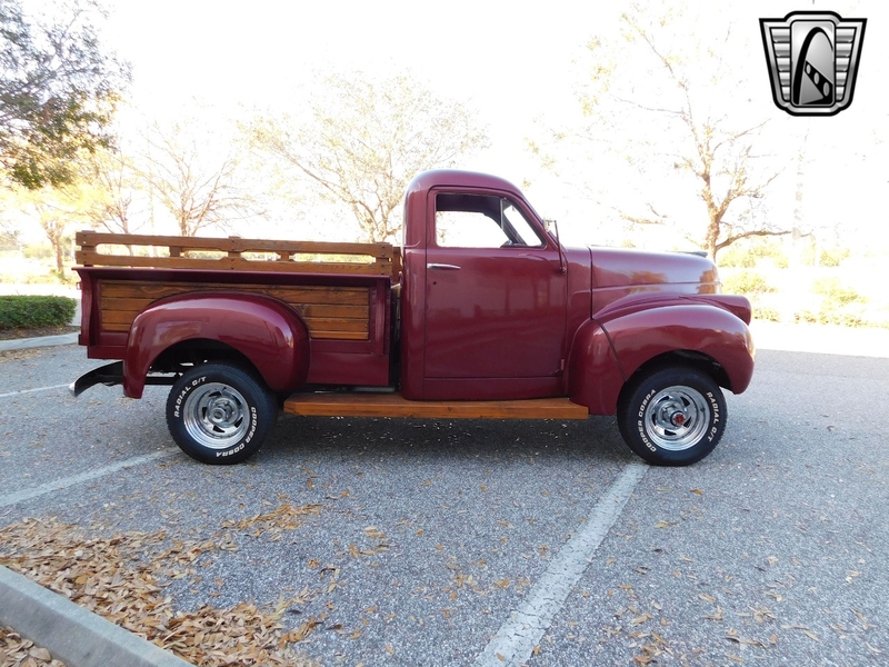 Description : Gateway Classic Cars of Tampa is proud to present this unique 1947 Studebaker Pickup. This cool custom 47 Studebaker truck is an interesting ride. First it sits on - what is believed to be - a Bronco II chassis with a 302 V8 providing propulsion. It catches the eyes with a head turning burgundy paint over matching custom burgundy and tan interior. The hood has been modified to open reverse clamshell style and its electrically operated! The interior features custom - leather covered - 60/40 reclining seats with armrest and a tilt steering column plus a modern AM/FM radio, power brakes and power steering. Let's circle back to the outside; character abounds from the color matched grill and polished wheels to the wood running boards and wood lined bed with wood railing. This truck take any challenge you throw at it thanks to the fully functional 4wd. When have you seen a 1947 Studebaker truck that's ready to go when you are? Want a classic you can daily drive if you wished? This is your truck! Add this classic custom work horse to your stable, you won't be disappointed.