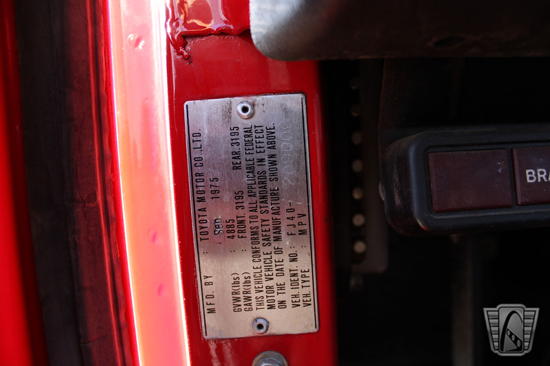 Description : Gateway Classic Cars of Dallas is proud to welcome this iconic 1976 Toyota FJ40! Toyota started production of the Land Cruiser FJ40 in 1960 and began importing them to the US in 1963. The last US-bound FJ rolled off the line in 1983, making a brief comeback as a modern SUV in the US called the FJ Cruiser from 2006 to 2014. From 1963 to 1983 the FJ40 saw little change aesthetically, the only real changes were improvements in technology mechanically. The Classic FJs are as comfortable on a trail as they are on the highway because they were designed to do anything you could ever ask it to do and do it well. This truck is in awesome everyday driver shape. From the suspension and drivetrain to the engine and interior it all will suit frequent trips wherever you want it to go. If The 2F inline 6 engine under the hood was not enough for you on the roads, don't be scared to take it off-roading, lifting up the jump seats, popping off the hardtop and catching some rest under the stars. She is a confident driver. All this beautiful ride is looking for is someone to call it theirs! Power Steering, Power Disc Brakes 4 Speed Manual, 4 Wheel Drive, Black Vinyl interior.