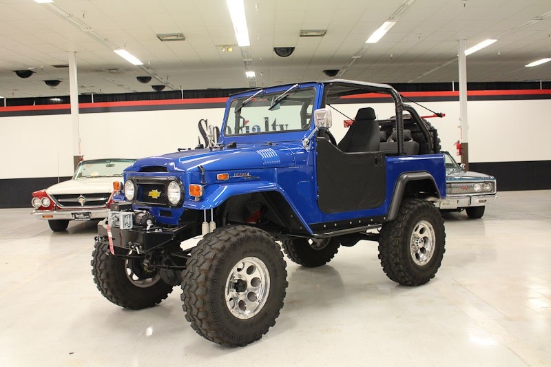 General description : This 1969 Toyota Land Cruiser 2 Door Soft Top (Stock # F13036) is available in our Fairfield, CA showroom and any inquiries may be directed to us at 707-419-8200 or by email at Sales@SpecialtySales.com. Spectacular 1969 Toyota Land Cruiser New to our Fairfield showroom is this spectacular 1969 Toyota Land Cruiser 2 Door soft top with blue exterior paint, a black interior and a matching black soft top. It features a professionally built 350 CI V-8 engine under the hood with a 4 speed granny low T18 Jeep transmission and transfer case, plus it has a 4 Flowmaster exhaust, an 8 lift kit, 37.5 swamp tires with custom Pro-Comp alloy wheels (with a full sized mounted spare), and too many other options to list. This one is in exceptional condition as well and it has to be seen up close to truly appreciate. Completely Restored to Competition Standards The current owner of this 1969 Toyota Land Cruiser purchased it 1982 and invested over $60,000 in parts and labor turning it into the spectacular showpiece that you see today. Dont let its looks fool you, however, because this one was built to drive on any terrain and it is an absolute blast out in the desert. With a custom drive shaft/drive train, a reinforced aluminum tank, a limited slip differential (w/ Posi traction), custom aluminum storage and a remote control Warn Winch, we can guarantee that you've never seen a classic this functional for off-road adventures. Additionally, this 1969 Toyota Land Cruiser was built with great performance in mind, and the entire build was documented from start to finish. So theres no guesswork involved here when determining this off-road monsters value; because everything on it is either brand new or professionally restored. All of the custom fabrication was completed by a professional aero jet mechanic as well so it is highly functional and very easy on the eyes. Over $60,000 Invested in Upgrades Alone Overall, this 1969 Toyota Land Cruiser is a spectacular off-road vehicle thats currently in better than new condition in almost every imaginable way. The photographs on our site do it absolutely no justice at all, so you absolutely must come see this one in person to know why its such a ridiculous steal at this price. For more information about this vehicle, visit our Fairfield, California showroom, give us a call at 707-419-8200, or email us at Sales@SpecialtySales.com. Be sure to mention Stock # F13036 as well. The information presented for this vehicle is deemed reliable, but is not guaranteed as a basis of purchase. The Buyer should make a thorough, independent inspection and investigation of the vehicle prior to purchase.
