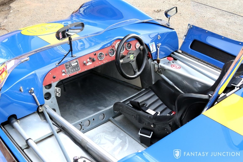 Today this Lotus 23B presents as a properly finished race car with mechanical integrity and exterior cosmetics professionally prepared for track use. The paint is very nicely done showing excellent gloss, vivid blue color, and a cleanly defined central yellow stripe and black detailed pinstripes, with inserted roundels, and raw aluminum rocker panels. The body panels exhibit good fit and finish throughout with very low body lines blending the clear windscreen into the integrated front and rear body surfaces. The characteristic painted yellow cast wheels are currently shod with Avon race tires. Throughout the car, evidence of detail supports the thoughtful stewardship this car has seen including clear plexiglass covered headlights, properly braced chrome plated roll bar, and recent CSRG tech stickers, all of which contribute to a very satisfying visual impression of this car.