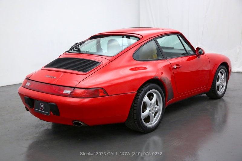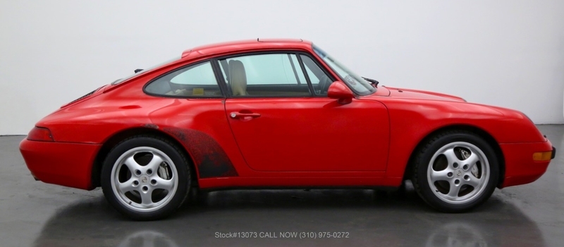 Allgemeine Beschreibung : 1995 Porsche 993 Carrera 4 CoupeThis original paint 1995 Porsche 993 Carrera 4 Coupe is available in its factory color code #80K Guards Red with a sand beige interior. It comes with a clean Carfax and is equipped with a 6-speed manual transmission, 3.6-liter engine, air conditioning, cruise control, power mirrors, power windows, power steering, power seats, power sunroof, 4-wheel disc brakes, tool kit, and 5-spoke wheels. All stickers in place which includes the color code sticker under the hood. An original 993 Carrera 4 which still retains its original paint (please review paint meter reading photos). This vehicle could use some light cosmetics and is mechanically sound. For $44,500