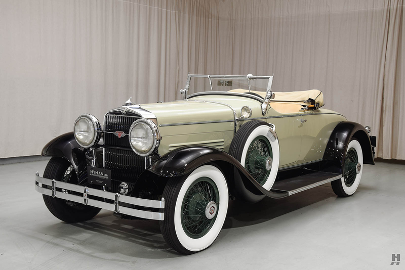 Black Hawks were only in production for a few short years, making them quite rare and highly desirable today. This extremely handsome example wears a rumble-seat roadster body, believed to be penned by LeBaron, who allegedly designed and built many catalog Black Hawk bodies. The handsome coachwork is in fine condition, having been treated to a very high quality restoration some years back and used sparingly since. The restoration was fully documented via a binder of photos which is included in the sale. It is finished in a lovely light green with contrasting black fenders and accented with dark green wire wheels. The paint is attractive and in good order, and panel fit is very good all around. Typical high quality detailing includes dual tail lights, step pads for the rumble seat, chrome mirrors, cowl lamps, trunk rack and a folding windscreen.