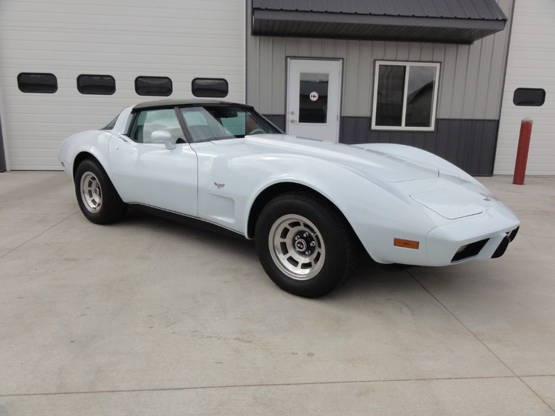 Allmän beskrivning : This pristine C3 Corvette is all original. The original owner decided last fall it was time to part with his loved 'Vette. The 11,400 miles is correct as is the entire car. No cosmetic work other than polishing has been done to the car. ALL panels inside and out are "as new" condition. Ice Blue factory paint with Oyster leather interior, factory glass-tops, aluminum wheels, and air conditioning, tilt & crusie. This is a unique opportunity to own a survivor!