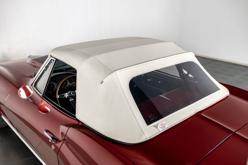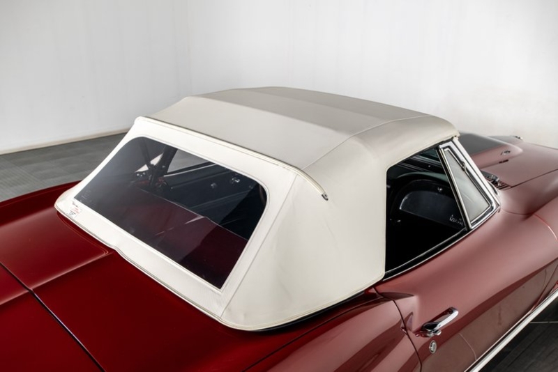 Powered by the 427 big block V8 with 390 raw horsepower that is backed by an original 4-speed transmission, this American icon is all muscle. That engine is music to the ears as you drive along with the convertible top up or down. The Marlboro Maroon paint glistens and contrasts well against the white top and black interior. The convertible top is properly date coded and the interior is all Al Knoch high quality.