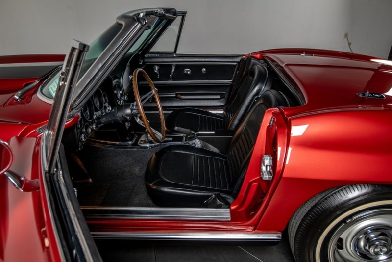 Highlights * Well documented 427 Corvette * Nut and bolt NCRS quality restoration completed 2020 * NCRS / Bloomington Gold quality restoration * Factory Marlboro Maroon paint code over black interior * Original numbers matching drivetrain * Black painted stinger hood * 390hp * 4-barrel original carb * 4 speed original transmission * Original rear end * AM-FM radio * Gauges all restored * Manual steering * Professionally rebuilt steering box * Wiper motor restored * Headlight motors restored * All new wiring harnesses throughout * New high-grade Al Knoch interior * New/Remanufactured seat belts and retractors from Snake Oyl * New convertible top; dated for judging * Re-Chromed bumpers, window posts, grill teeth, door handles, rear license plate surround, etc. * BF Goodrich Silvertown bias ply tires 7.75 x 15 Whitewall * Engine rebuilt by Griff's Engine & Machine Co. Sandusky, OH * Original Tank sticker included * Original Sales invoice included * Original Protect-O-Plate included * Ownership History: Copy of Title from 1974 & 2004 * Restoration photos included * Restoration receipts included * Photos of car in 2004 included * Photos of car prior to restoration in 2019 included * All documents come with sale of car * All RK Motors vehicles receive a comprehensive, multi-point inspection * We can arrange shipment of your purchase anywhere in the world * Sold on a New Jersey Registration (NJ does not issue titles for vehicles of this vintage) * Please note: This vehicle may require Vehicle Identification Number (VIN) verification and/or safety and emissions inspections to transfer ownership and register the Vehicle in the declared State of residence. In most States, such requirements are dependent on the age of the vehicle which varies State by State. We recommend as part of the buying process that you check with your local DMV office to ensure compliance with your declared State of residence's titling and registration requirements.
