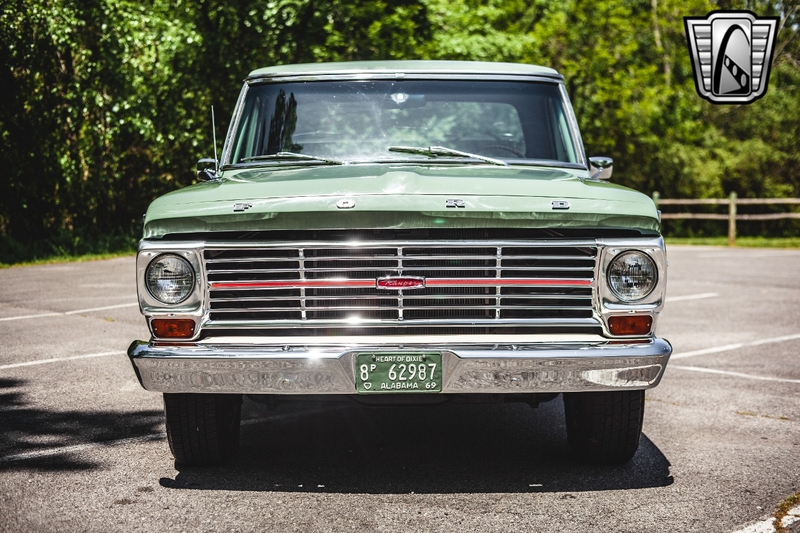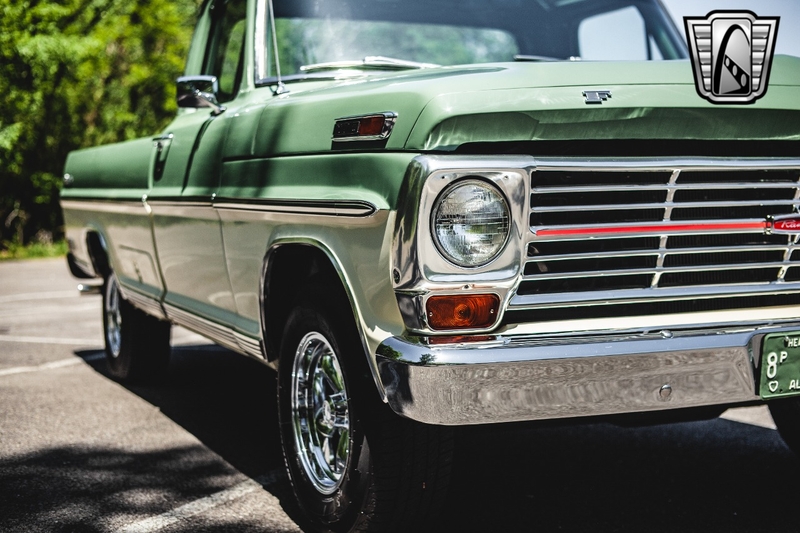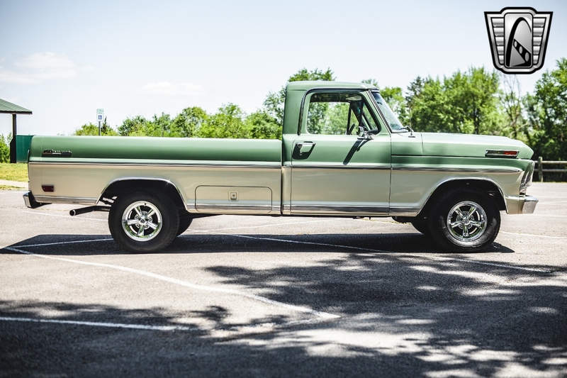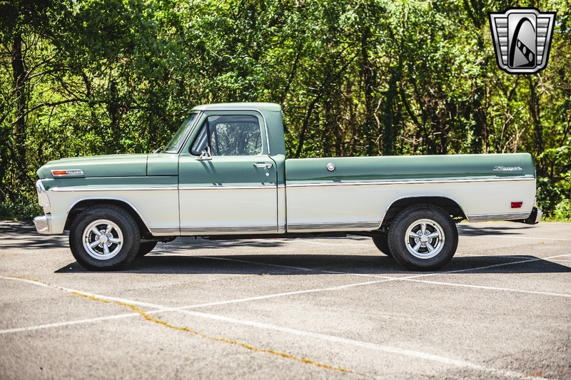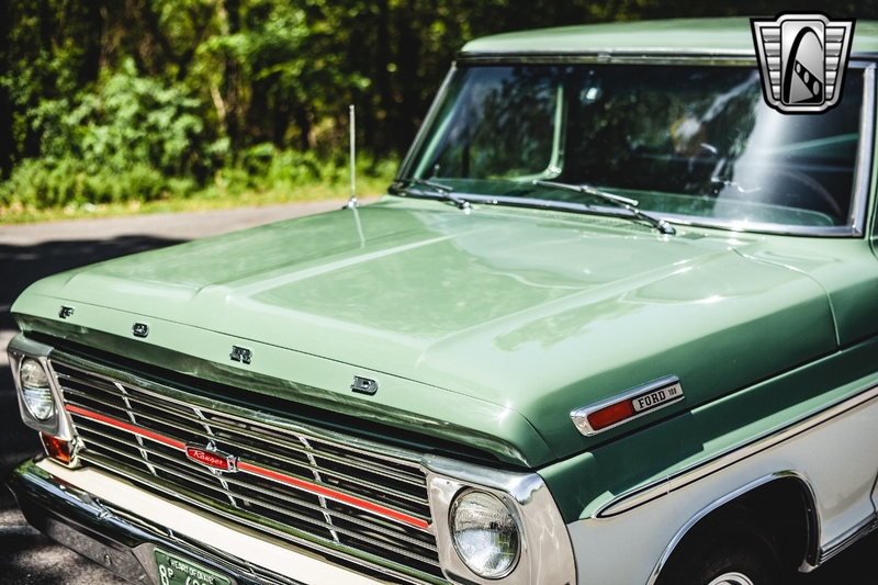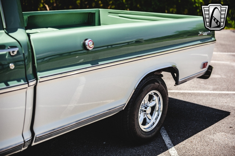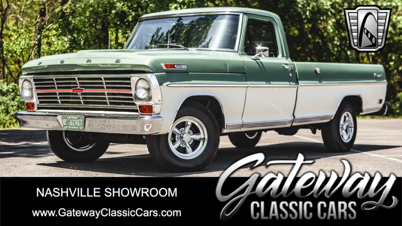 Description : Gateway Classic Cars of Nashville Tennessee is proud to digitally present this stunning 1969 Ford F100. With very low miles since rebuild, the powerful brute is ready to take you wherever you need to go! You don't have to be a computer tuning wizard to have EFI on this sweetheart! Thanks to a new Holley Sniper Fuel Injection System that can be programed from the comfort of the pristine cab. This longbed 69' Ford F100 for sale is powered by a muscular 390 cubic inch V8 engine. This 390 is a great mix of horsepower and low end torque, making it a great and versatile set-up for this F100. It's backed up by a Beefy 3-spd Manual column shift transmission, which has also recently been fully rebuilt and overhauled. With power brakes and power steering, you get the classic look and feel, with modern day amenities! The whole truck is fresh off a frame up restoration, including: new rubber, drivetrain, carpet, brakes, etc. The exterior is finished with a deep gloss soft olive green and white scheme. The car has a vintage vibe, with colors that scream modern muscle! The interior consists of your classic green vinyl bench seat.. Options on this 69' Ford F100 for sale, include: AM/FM radio, power brakes, power steering, vinyl interior, and aluminum/alloy wheels wrapped in radial tires. If you're looking for a truck that is versatile and functional, this Ford is for you. Read to work on Friday, gitty-up and go on Saturday, and cruise the boulevard on Sunday. To see more HD pictures and video please visit GatewayClassicCars.com. For more information please call the Nashville showroom at 615-213-1800 or e-mail us at Nashville@GatewayClassicCars.com.