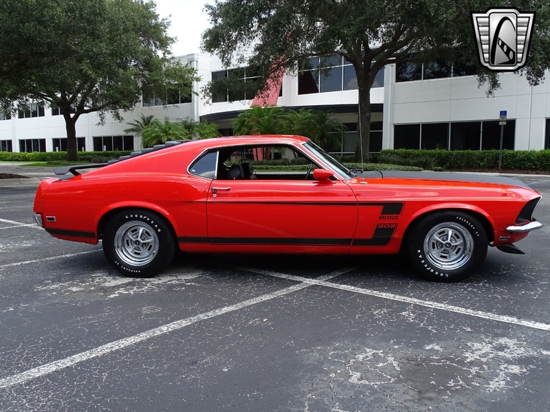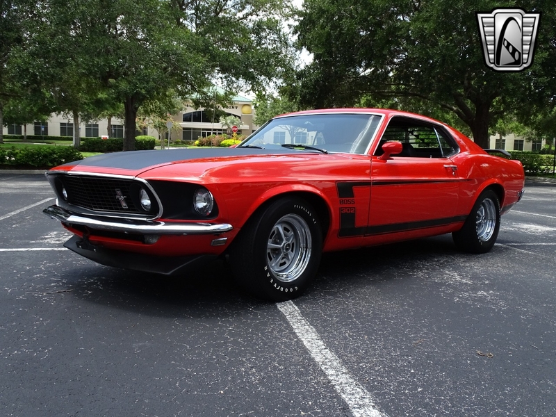 Description : Gateway Classic Cars of Orlando is proud to present this 1969 Ford Mustang Boss 302. The 69-70 fastback Mustang is widely regarded by enthusiasts as the greatest looking body style of the classic pony car. This 69 Fastback is finished in an eye catching Calypso Coral and features a matte black hood and side decals. As you walk around the vehicle you'll notice nice details like the decklid spoiler, window louvers and meaty Polyglas tires. Take a seat behind the wheel and you'll feel like an action movie star in with it's black vinyl bucket seats and wood rim steering wheel. Take a look across the hood and the prominent bulge lets you know there's some serious business under there. A big thomping 302 cubic inch V8 which is paired with a 4 speed manual transmission. Imagine how this pony can get up and go! If you're looking for a mean fastback to impress the crowd this is the one you want to own. Options include AM/FM radio, Air Conditioning, power steering, power brakes, vinyl interior, seat belts and rally wheels wrapped in bias ply tires.