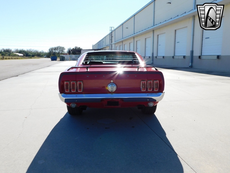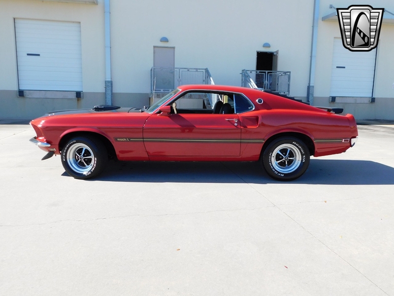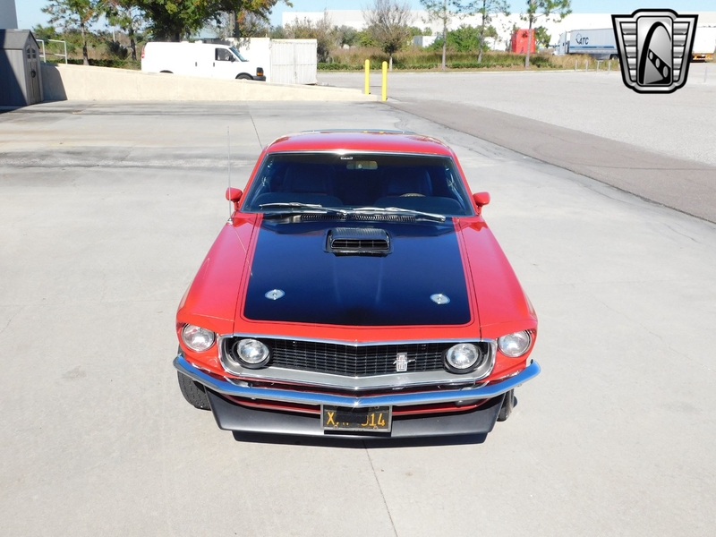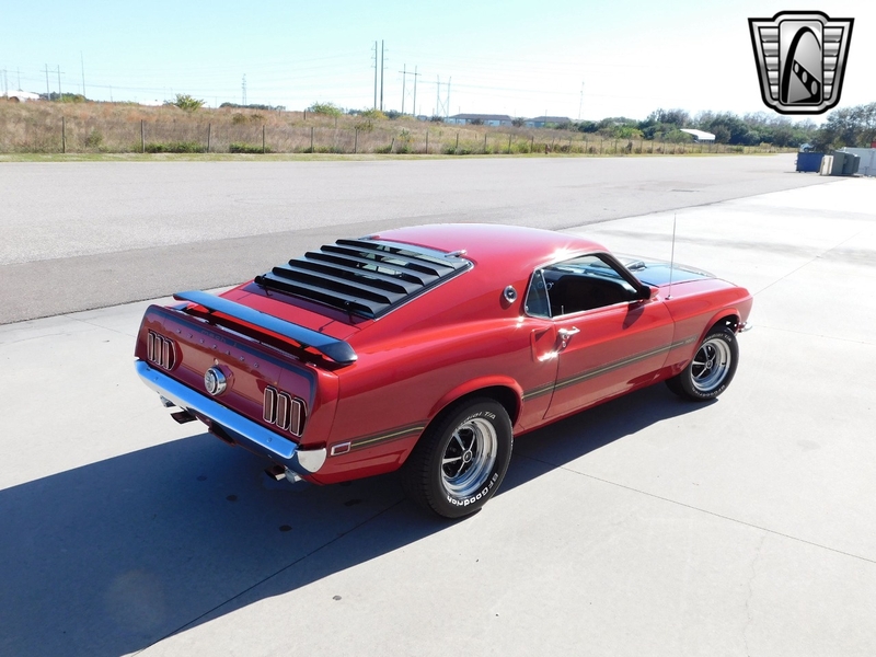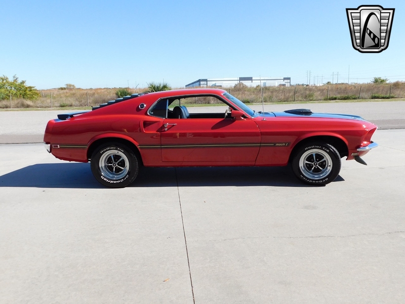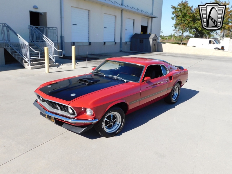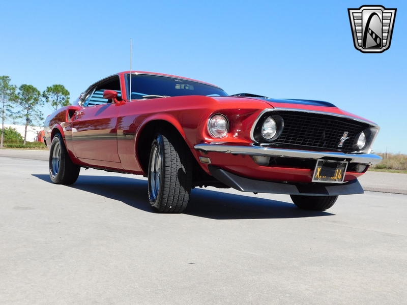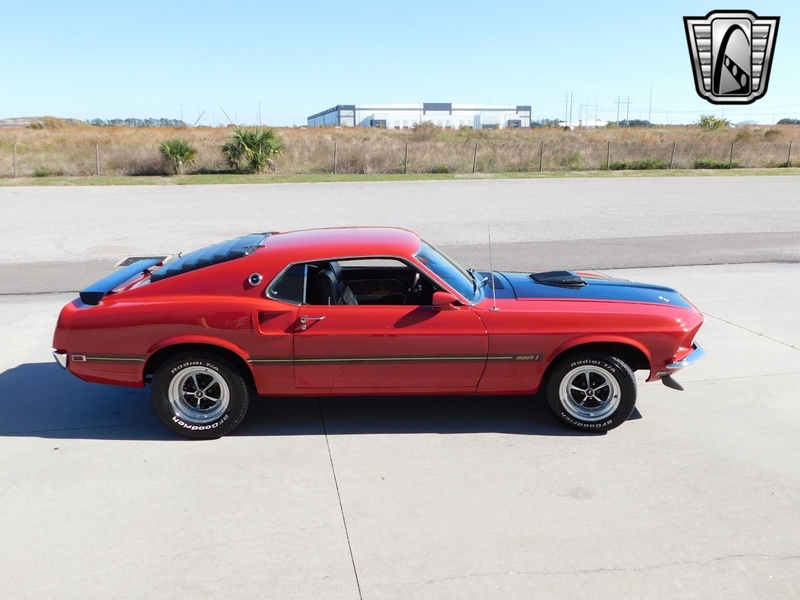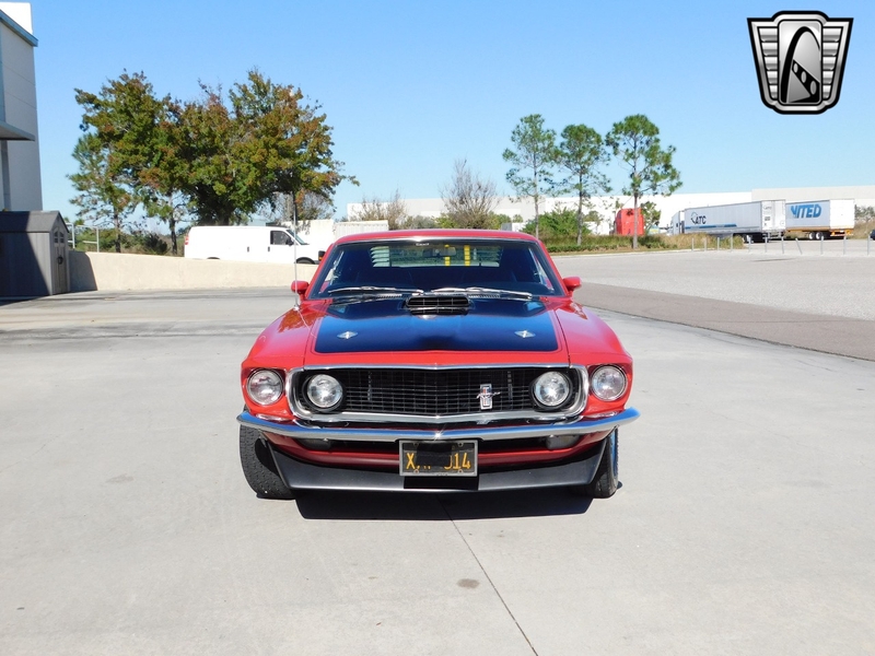 Description : Gateway Classic Cars of Tampa is proud to offer this coveted 1969 Ford Mustang Mach One 428CJ. Many Mustang and collector car enthusiasts alike consider the '69 Mustang fastback the best looking Mustang to ever roll off the assembly line. The Boss 429 and 302 models are some of the most popular Mustangs of all time. Following the the "Boss" cars came the Mach Ones and the top dog was the big block 428 Cobra Jet, which some said could take a "Boss 9" car in the stop light wars. As a result, many of the Cobra Jets found themselves living their lives a quarter mile at a time on the drag strip. In 1969, 12,212 of the Machs were "R Code" 428s or shaker hood cars. In reality, there just isn't alot of these timeless machines around today. Big blocks Fords are notoriously cold natured creatures, but pump the gas once and this Cobra Jet fires right up. An Edlebrock intake adds to the 335 "advertised" horsepower which was intentionally underrated by FoMoCo to keep insurance companies happy. Keeping this torque monster cool are an aluminum radiator and electric cooling fan. The black interior shows little wear and the candy apple red paint, though an older respray, still maintains a nice luster. Few cars of the era looked as menacing as the '69 Mustang and when you saw the Cobra Jet emblems shaking at the red light next to you, you'd think twice before starting any trouble. A quick check of the classic car market will show you that this '69 Mach One "R Code" is priced to move quickly.