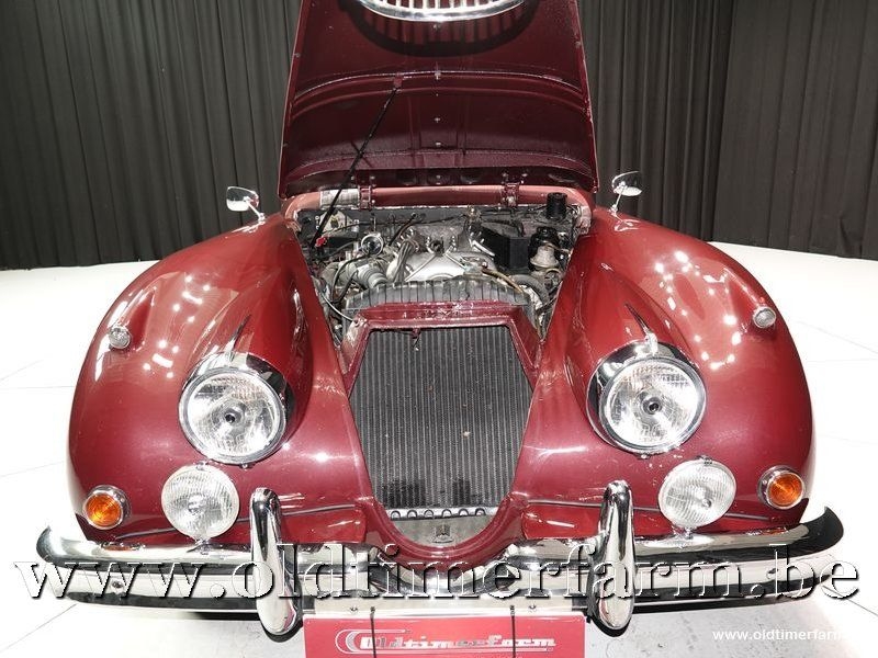 Allmän beskrivning : ❗Lowered price from €79.950- €77.950❗ Initially the XK 150 was available in Fixed Head Coupé (FHC) and Drophead Coupé (DHC) versions. The Roadster (XK150 OTS - Open Two-Seat) was launched in 1958. Minimal rear seats were fitted in the coupés. Although bearing a family resemblance to the XK120 and XK140, the XK150 was radically revised. A one-piece windscreen replaced the split screen, and the wing line no longer dropped so deeply at the doors. The widened bonnet opened down to the wings, and on the Roadster the bulkhead was moved back 4 inches (102 mm) to make the bonnet longer. The car was available at various times in Red, Pearl Grey, White, Indigo Blue, Claret, Cotswold Blue, Black, Mist Grey, Sherwood Green, Carmen Red, British Racing Green, Cornish Grey, and Imperial Maroon. The XK140's walnut dashboard was replaced by one trimmed in leather. On the early Drophead Coupés, the aluminium centre dash panel, which was discontinued after June 1958, had an X pattern engraving similar to the early 3.8 E-type. Thinner doors gave more interior space. On the front parking lights, which were located atop the wings (fenders), a little red light reminded the driver the lights were on. Suspension and chassis were very similar to the XK140, and steering was by rack and pinion; power steering was not offered. The standard engine, the same as fitted to the XK140, was the 3.4 litre DOHC Jaguar straight-6 rated at 180 SAE bhp at 5750 rpm but most cars were fitted with the SE engine whose modified cylinder head and larger exhaust valves boosted the power to 210 SAE bhp at 5500 rpm. Twin 1.75-inch (44 mm) SU HD6 carburettors were fitted. While the first XK150s were slower than their predecessors, the deficit was corrected in the spring of 1958 with a 3.4-litre "S" engine whose three 2-inch (51 mm) SU HD8 carburettors and straight-ported cylinder head increased power to a claimed 250 SAE bhp. For 1960, the 3.4 litre engine was bored to 3.8 litres, rating this option at 220 hp (164 kW; 223 PS) in standard tune or 265 hp (198 kW; 269 PS) in "S" form. A 3.8 litre 150S could top 135 mph (217 km/h) and go from 0–60 mph in around 7.0 seconds. Production ended in October 1960, and totaled 2265 Roadsters, 4445 Fixed Head Coupés and 2672 Drophead Coupés Specifications. Bodywork Length – cm (in): 447 (176) Width –cm (in): 164 (64.6) Height – cm (in) : 136 (53.7) Wheelbase – cm (in) : 259 (102) Weight – kg (lb): 1430 (3156) Mechanics. Engine : straight-6 3442 cc (210 ci), front-mounted Valves : 12 Fuel system : 3 SU carburettors Gearbox : 4 speed + overdrive, manual7 Maximum power : 210 bhp at 5500 rpm Torque : 291 Nm at 3000 rpm. Maximum speed : 227 km/h (141 mph)