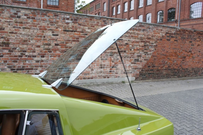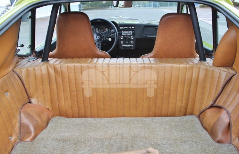 Allmän beskrivning : Das italienische Design der 3. Sonett- Serie (SAAB 97) trägt die Handschrift des Turiner Karosseriers „ Coggiola“ : einfach chick! . Hergestellt wurden in den Jahren 1970 bis 1974 nur rund 8.341 Einheiten. Das hatte sicher auch etwas mit dem damals sehr hohen Preis zu tun. Also beste Voraussetzungen für die Qualifikation eines Klassikers. Die Karosserie besteht aus Kunststoff, das Gewicht konnte damit auf 770 KG begrenzt werden. Angetrieben durch einen auf 1,7 Liter Hubraum erweiterten Ford V 4 Motor ergeben sich in Verbindung mit dem niedrigen Gewicht und der guten Aerodynamik (Luftwiderstandsbeiwert 0,31) flotte Fahrleistungen bei einer Top-Speed von rund 160 Km/h. Es handelt sich um ein europäisches Model mit der Erstauslieferung in Schweden. Das Fahrzeug trägt auf der Heckscheibe stolz den Aufkleber des Sonett-Clubs „ New England „ .Es war also zwischen durch einmal außerhalb Europas und dann ab dem Jahr 2001 wieder in Schweden.Im Jahr 2016 konnten wir das sehr gut erhaltene und sehr originale Fahrzeug im Auftrag eines Liebhabers kaufen. Wir haben die Verschleißteile des Fahrzeugs altersbeding komplett erneuert ( Reifen, Bremsen, Stoßdämpfer, Flüssigkeiten etc. ) Seiher ist das Fahrzeug allerdings zeitbedingt nur weniger als 300 Km bewegt worden. Daher steht es nun wieder( mit einer Träne im Auge des Vorbesitzers ) zur Disposition. Es ist sicherlich eines der besterhaltenen gepflegten originalen Fahrzeuge am Markt, ohne jeden Service- oder Reparaturstau.