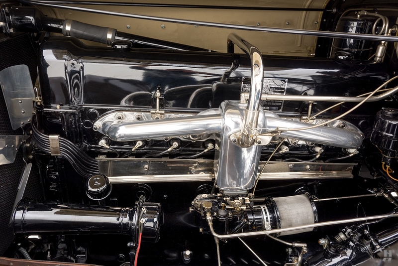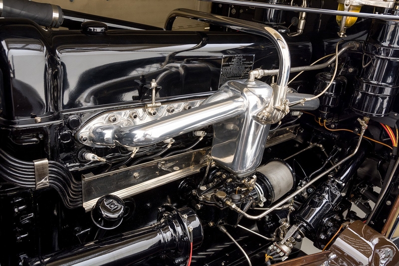 In the mid-1920s, the brilliant engineer Fredrick Moscovics took control of Stutz Motor Car Company following the contentious departure of the company’s founder and namesake, Harry C. Stutz. Moscovics’ talent and creative energy rejuvenated the Stutz Motor Car Company, leading them into one of the most successful periods in company history. The Hungarian-born Moscovics trained in Europe and previously worked at Marmon before arriving at the helm of Stutz. He found inspiration in the powerful continental tourers from Bugatti and Hispano-Suiza and was as gifted a promoter and manager of the Stutz brand as he was an engineer. Perhaps his most significant contribution to Stutz was the inline 8-cylinder engine with advanced chain-driven overhead cam layout, cross-flow head, dual ignition, ten main bearings, and a twin-throat carburetor – highly sophisticated by American standards of the day. As fitted to the superb 1930 Model M, the engine displaced 322 cubic inches with a healthy 115 horsepower output. Later in the 30s, the Model M was renamed the SV-16 (single valve) to differentiate it from the (dual valve) DV-32 with its 32-valve cylinder head.