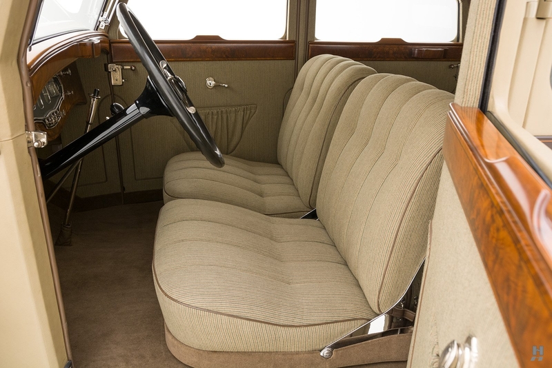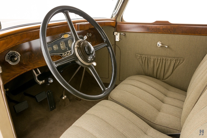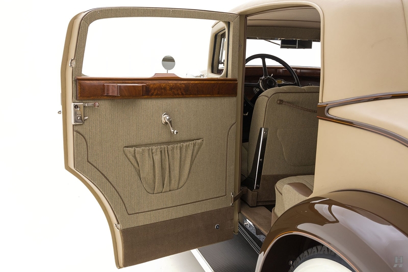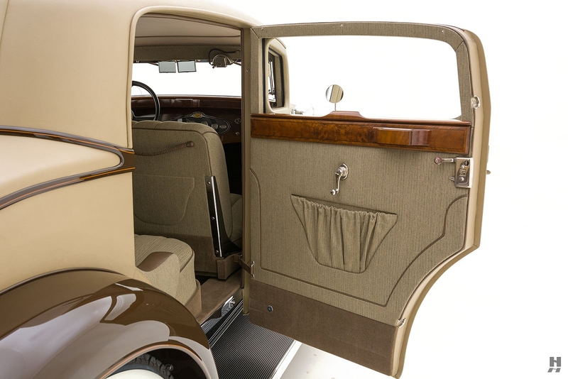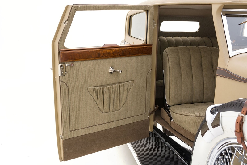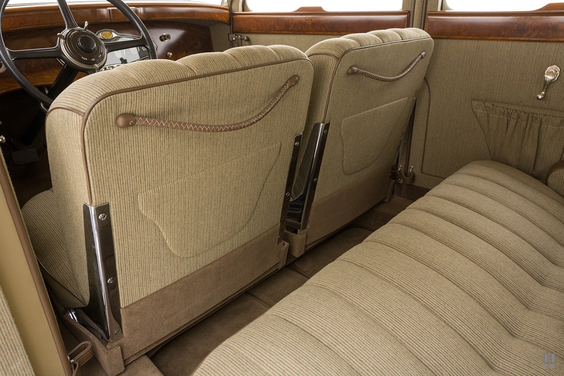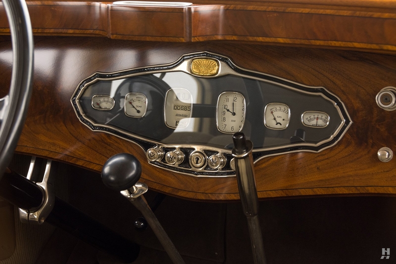 Today, the Stutz MB Monte Carlo remains in superb condition. The fit of the body is astonishing, with doors that shut precisely with the lightest of touch, thanks to the unrivaled skill displayed by Mr. Nemenic and the team at RM Restorations. It was restored to be as close to original specification as possible, with period-correct materials, finishes, and hardware. The paint and brightwork are exquisite, and the car has an enormous presence thanks to its 145-inch wheelbase, sparkling chrome wire wheels, and whitewall Firestone tires.